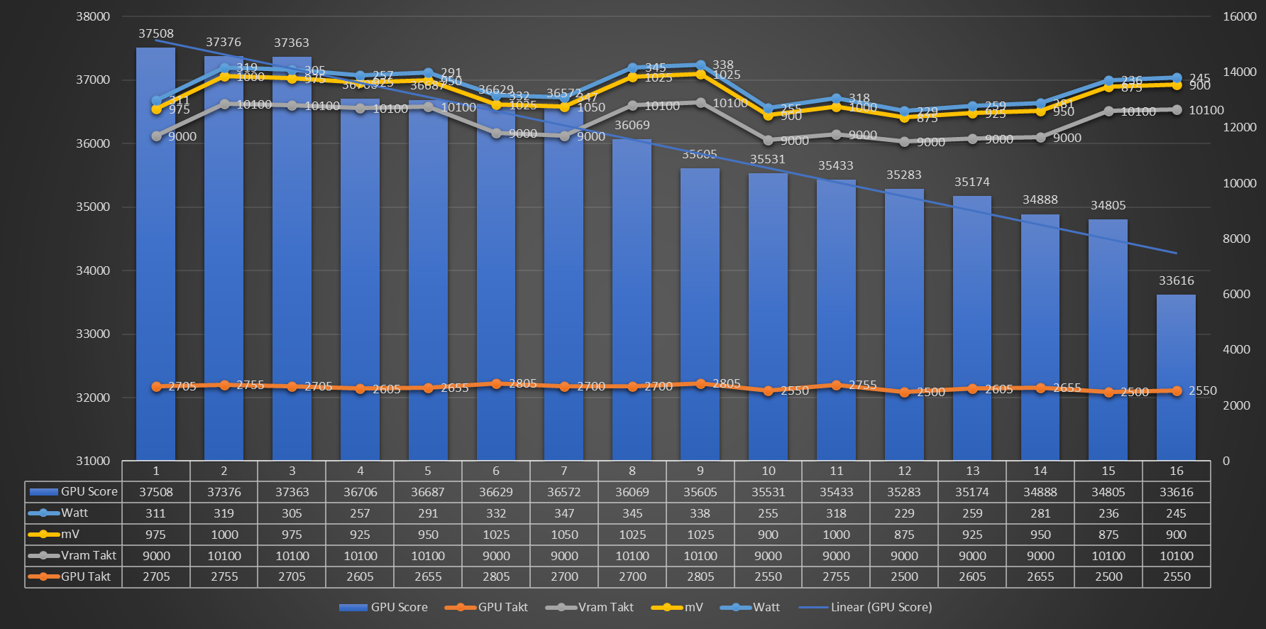 | GPU Score | GPU Takt | VRam Takt | mV | Watt |