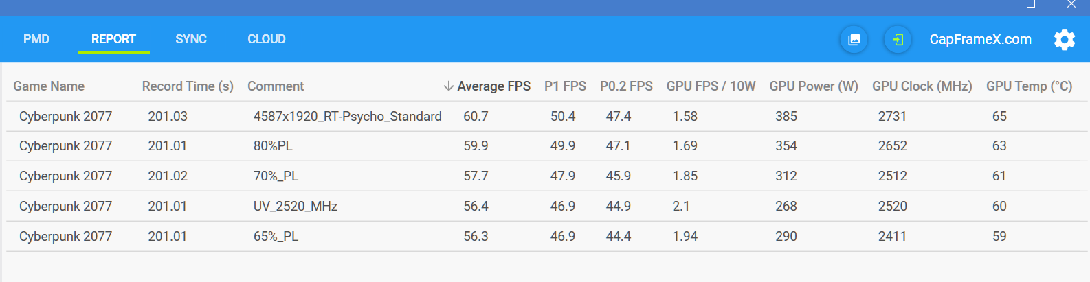Bei Cyberpunk kann ich egal was einstellen, Leistungsaufnahme bleibt immer <450W.