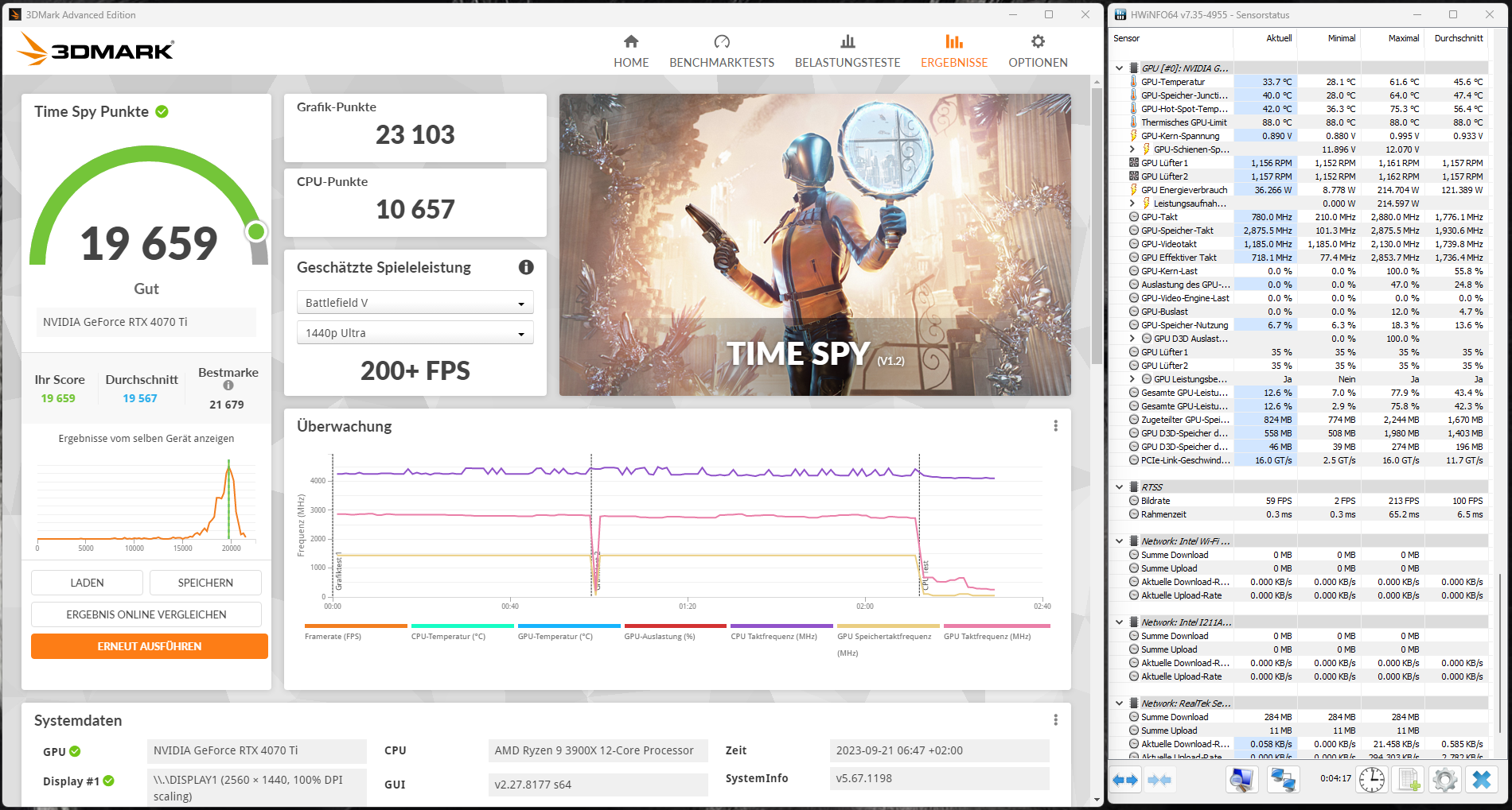 Und DLSS 2/3 habe ich an der Stelle nichmal ausprobiert. Das würde dann auch noch reinspielen, und dafür sorgen, das man nie das 240w Profil verlässt.