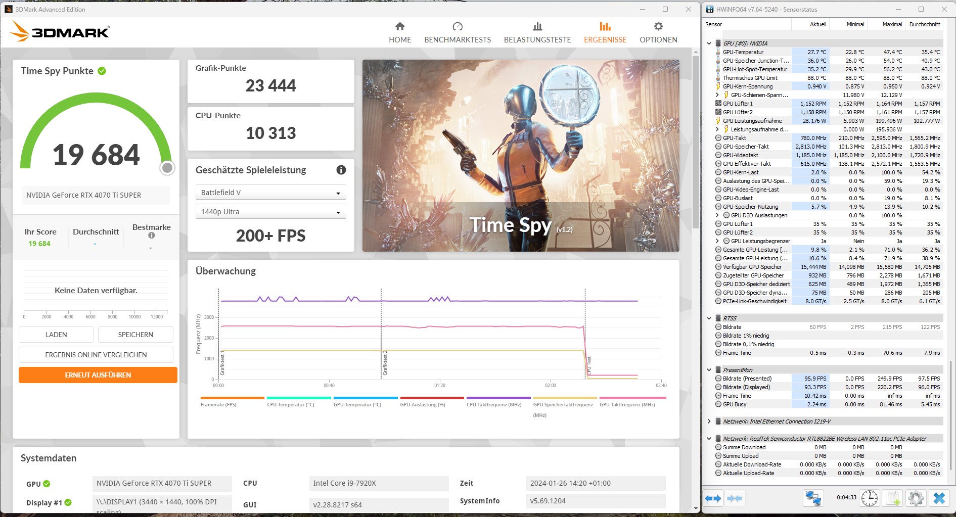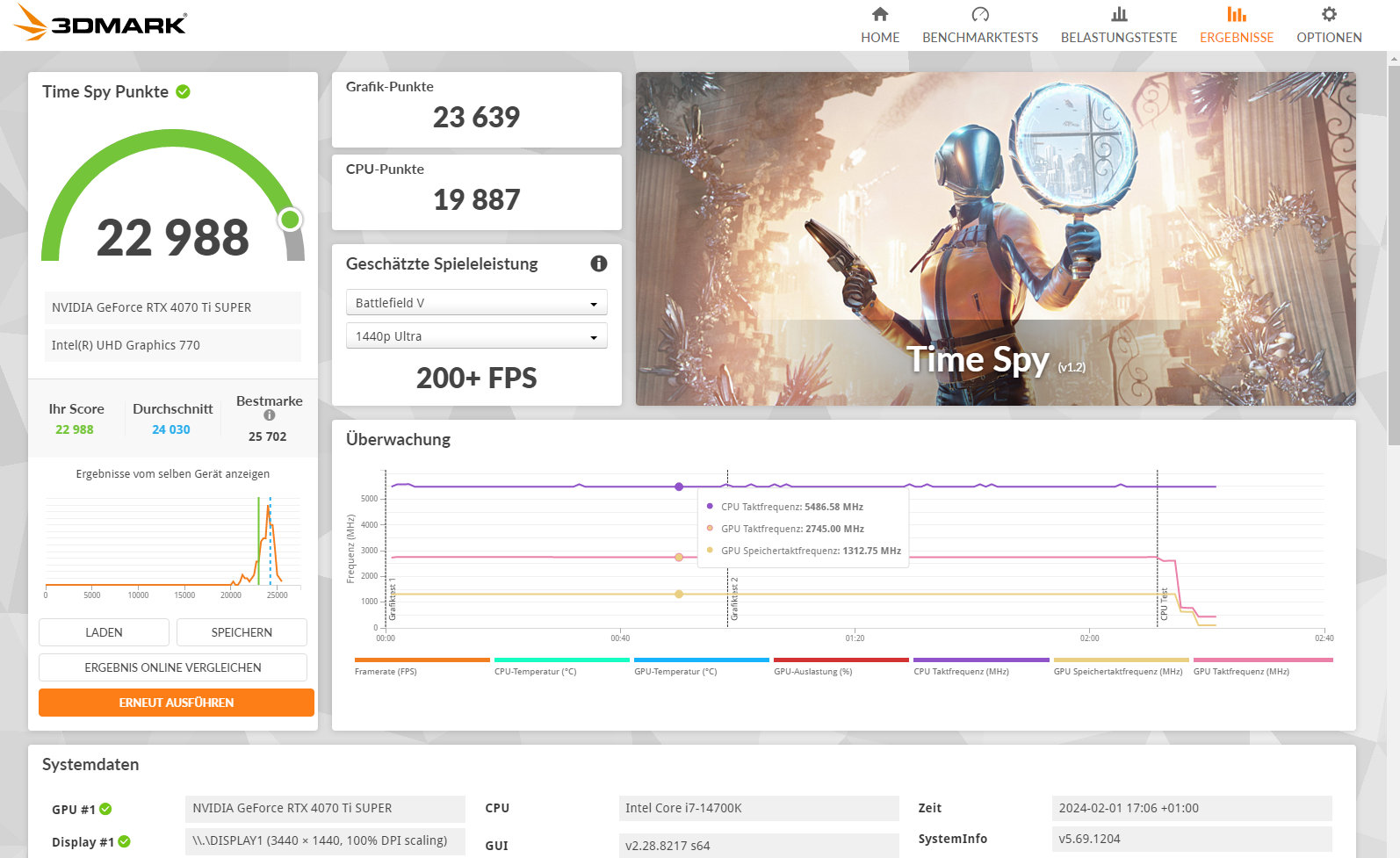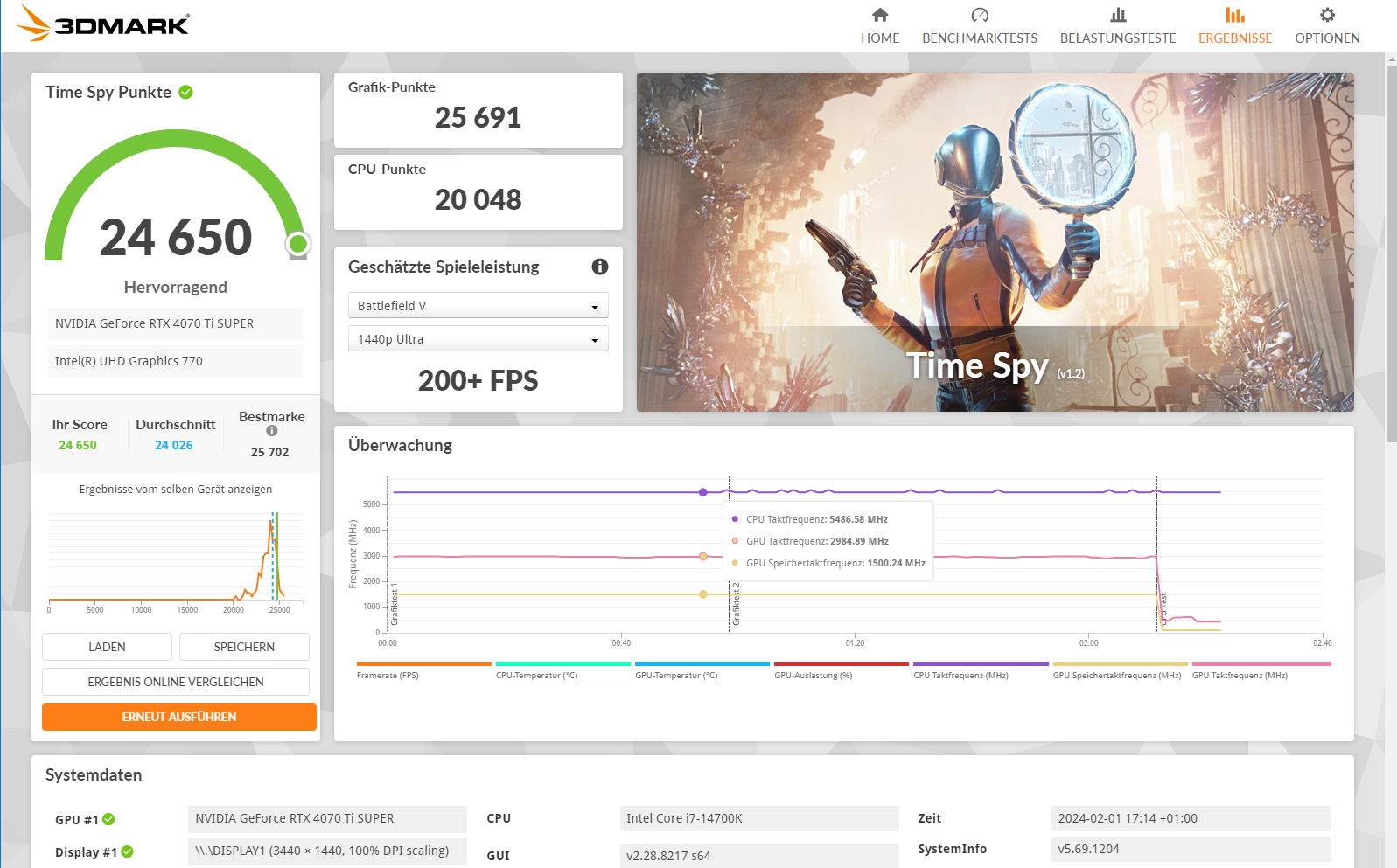 Allerdings wenn ich im 3DMark suche nach meiner CPU und GPU sind zwar viele mit über 23000 aber das sind ja keine Stock Werte. Wenn ich alleine nur in meinen Land Österreich suche bin ich mit meinen Score auf einmal weit oben? Also die über 22000 was da PCGH gemessen hat bei der non Super, ist das der Gesamt Score oder nur der Graphics Score denn dann wäre ich mit meinen 24000 ja genau da wo die Ti Super sein soll. Vielleicht sind ja meine Werte doch nicht so schlecht wie viele hier meinen?