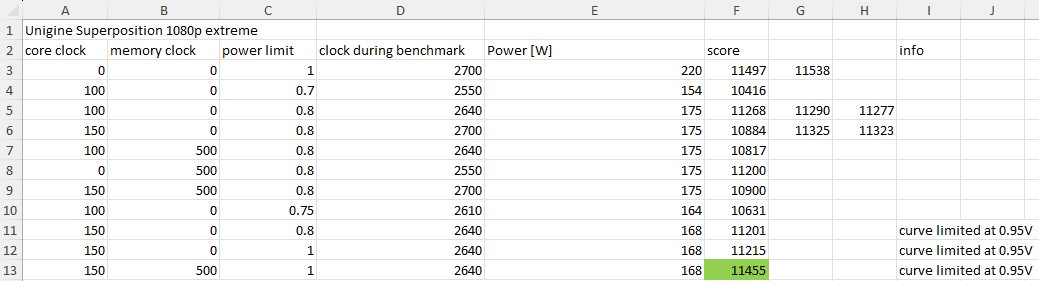 Kann ich nicht bestätigen.DriveByFM schrieb:Einfach nur das PL begrenzen ist die schnellste aber schlechteste Lösung. Die Karte verbraucht im Verhältnis der Leistung deutlich mehr, als wenn man die Spannung "oben" kappt.