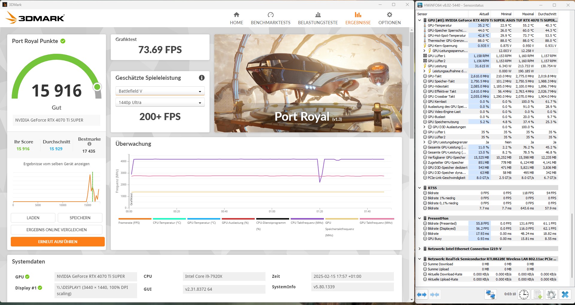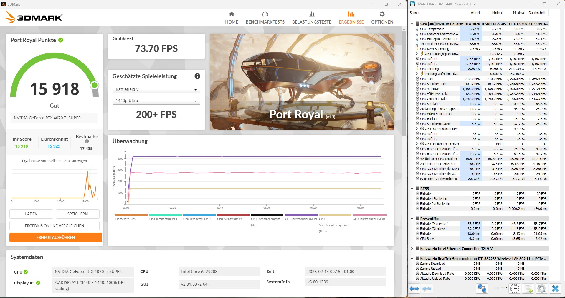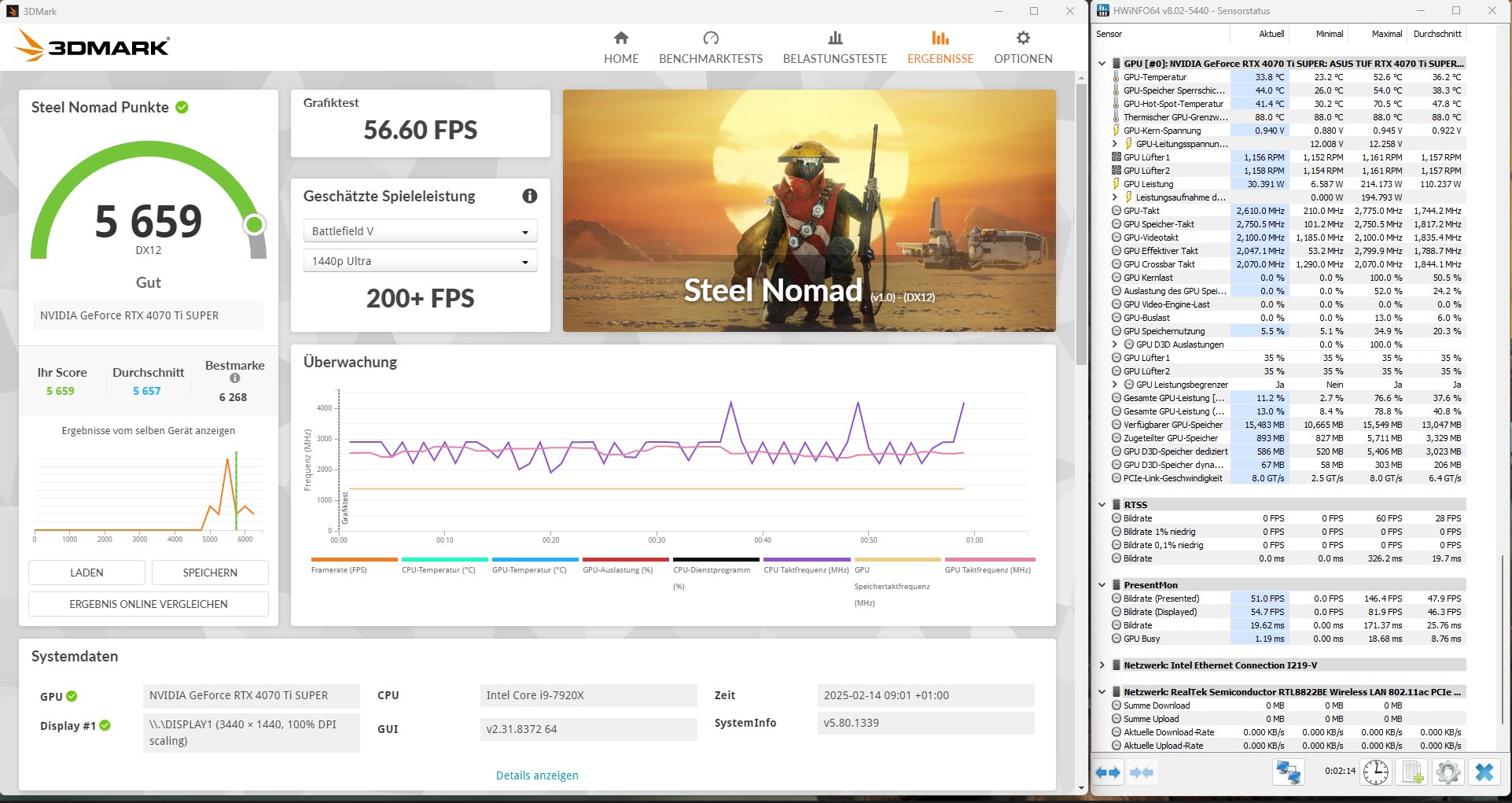 2730 MHz: Steel Nomad 5651, Port Royal 15719 (gemittelt)