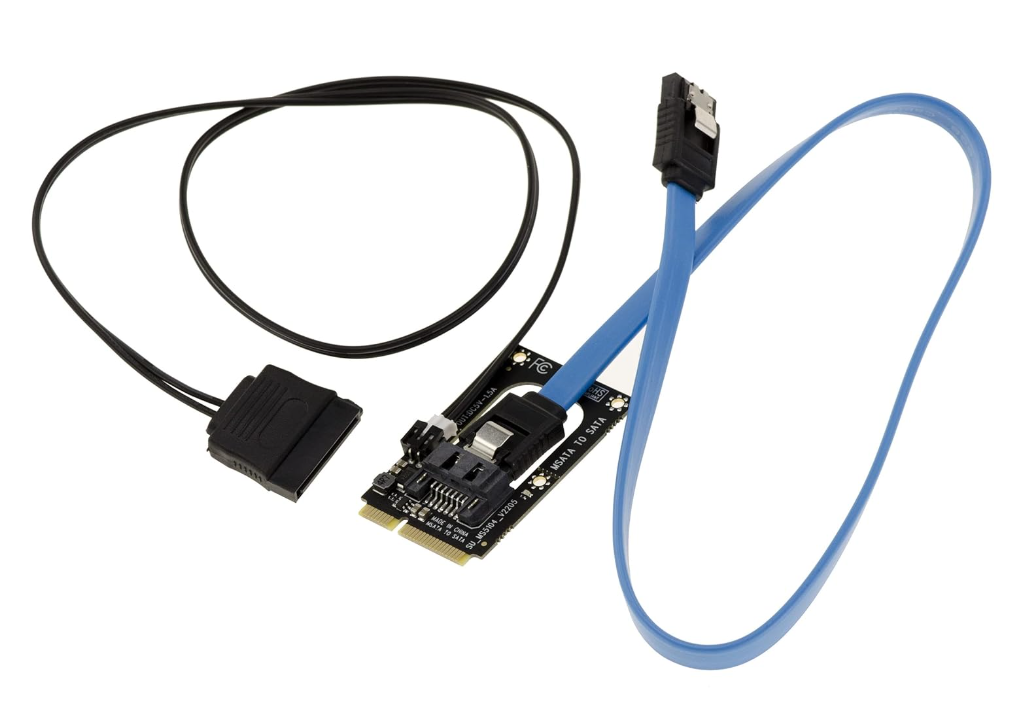 - Die zweite Festplatte wird über einen mSATA-zu-SATA-Adapter (siehe Bild) inklusive SATA-Power angeschlossen.