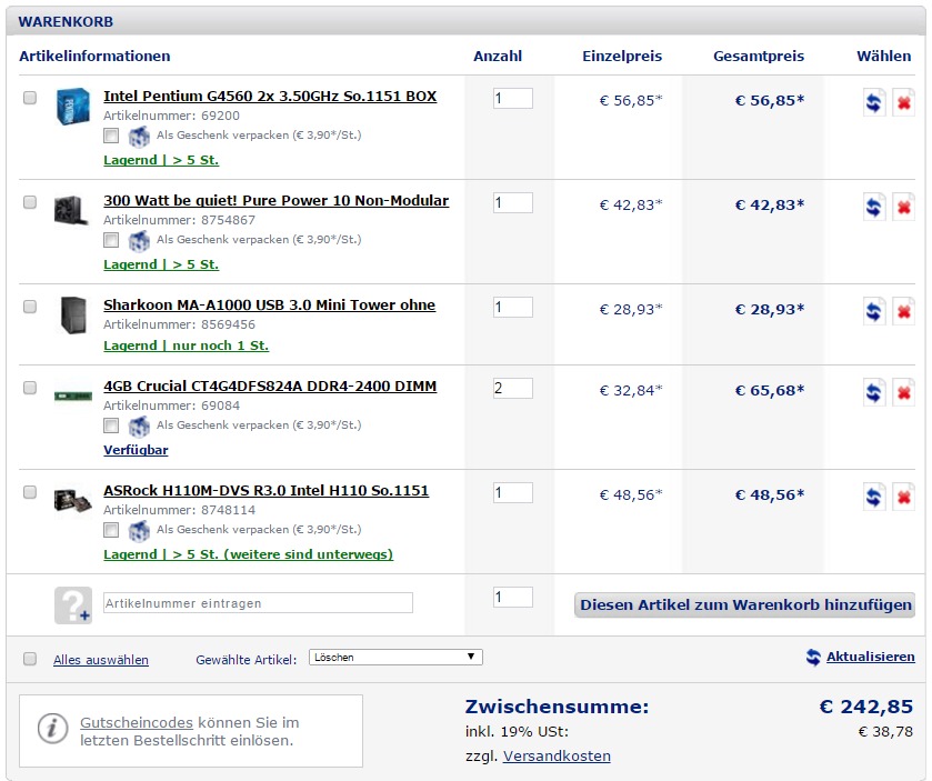 Low-Budget Office-PC. Ist meine Zusammenstellung ok?