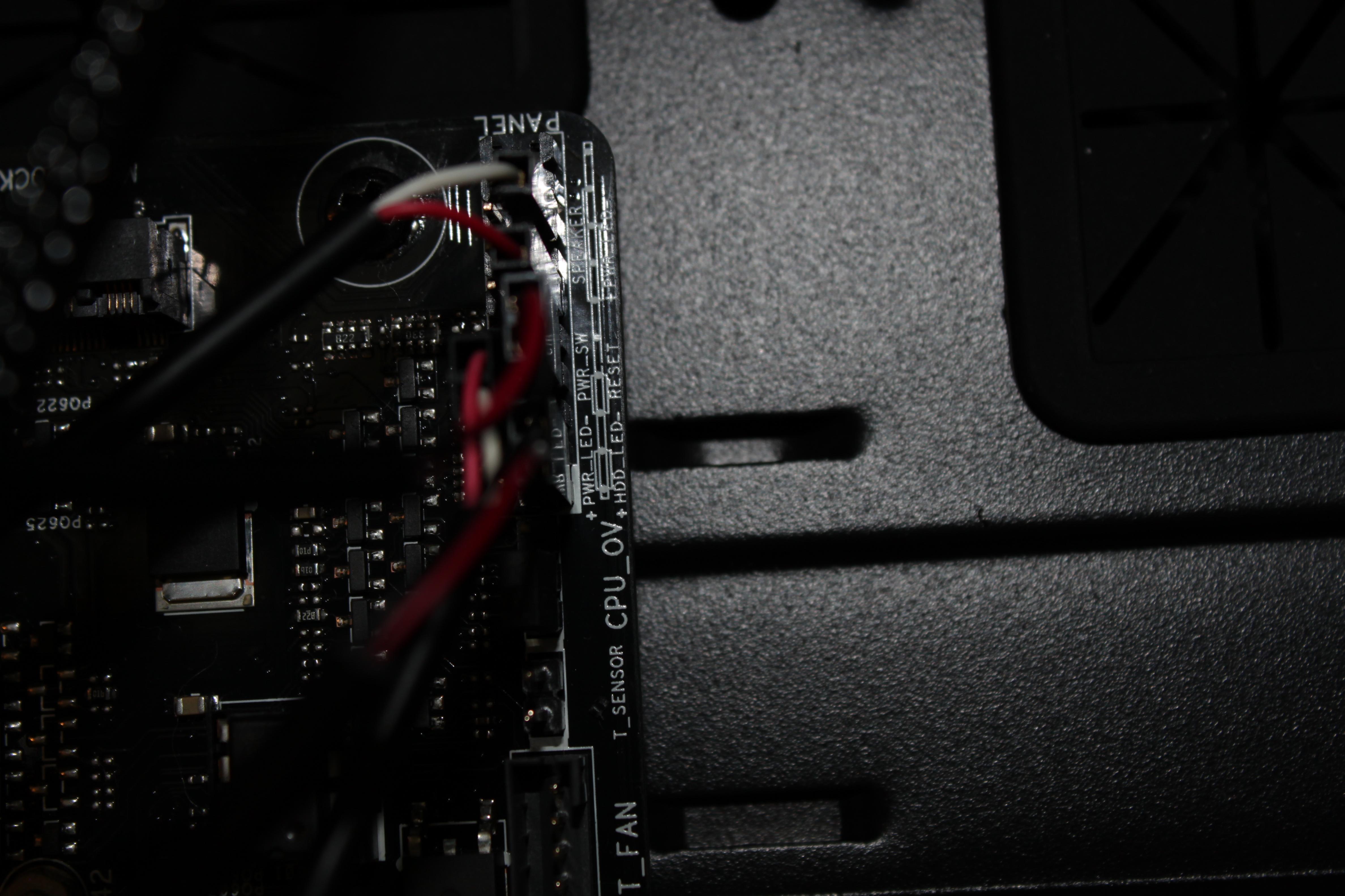 Das Kabel im PWR_SW auf dem Bild hat doch ein weißes und ein rotes Kabel ... und das rote steckt doch im GND und das weiße im PWRBTN ... also falsch rum, oder etwa nicht?