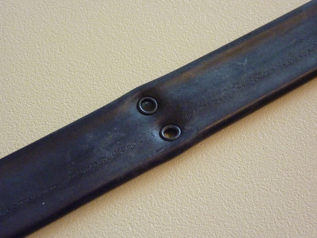 Anschließend mit einer Lochzange Löcher reinstanzen (Ich habe zwei Stück pro Seite gemacht) und danach Ösen reinnieten.