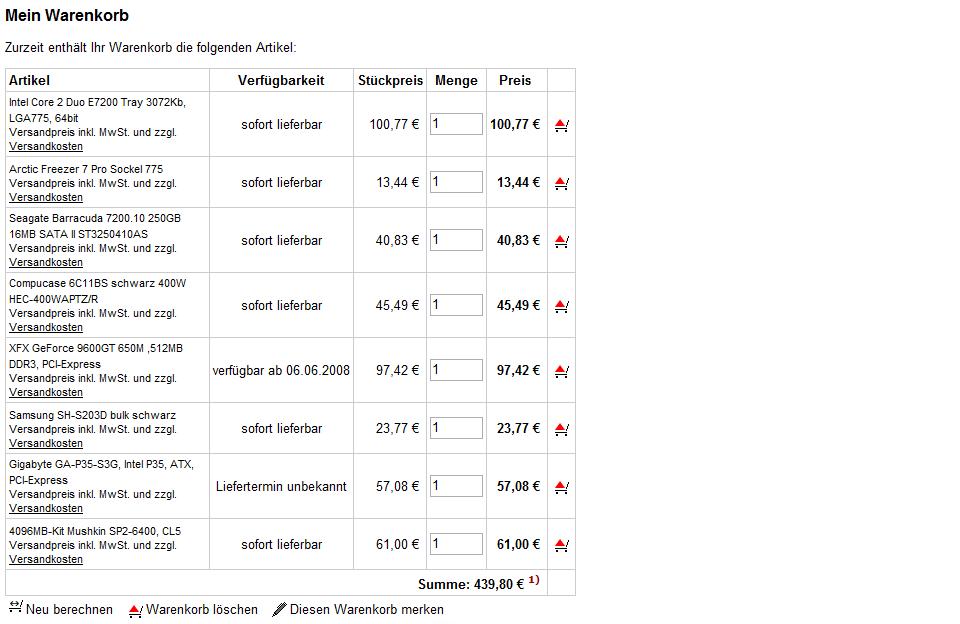 Cpu: Intel® Core 2 Duo E7200 124,- Euro ( boxed )