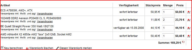 Graka: 512 MB TC Geforce 8 8400 GS PCI-EXPRESS