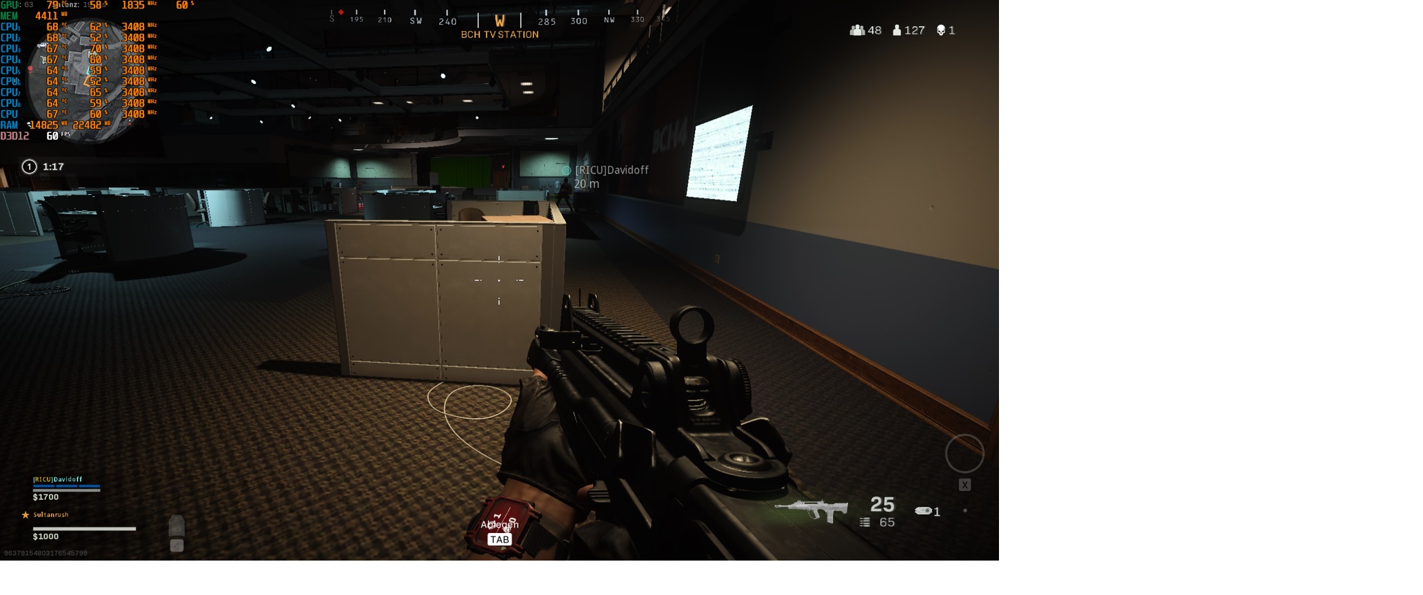 Meine Grakka läuft auf etwa 60-70 % Auslastung und meine CPU auf etwa 70 - 80 % was mir irgendwie nicht normal vorkommt. Im Youtube Video kommt die VRAM Auslastung auf 7200 MB und bei mir auf gerade mal 4800 MB? Ich hatte gestern mal nach langem wieder bf5 installiert und dort sehe ich das meine CPU bei 100% am Anschlag ist und die Grakka dadurch auf 60% gammelt und da weiss ich das meine CPU nun mal nicht mehr reicht für BF5. Aber bei Warzone versteh ich nicht genau wie ich so wenig FPS habe wenn nicht mal Grakka und CPU am Anschlag sind.