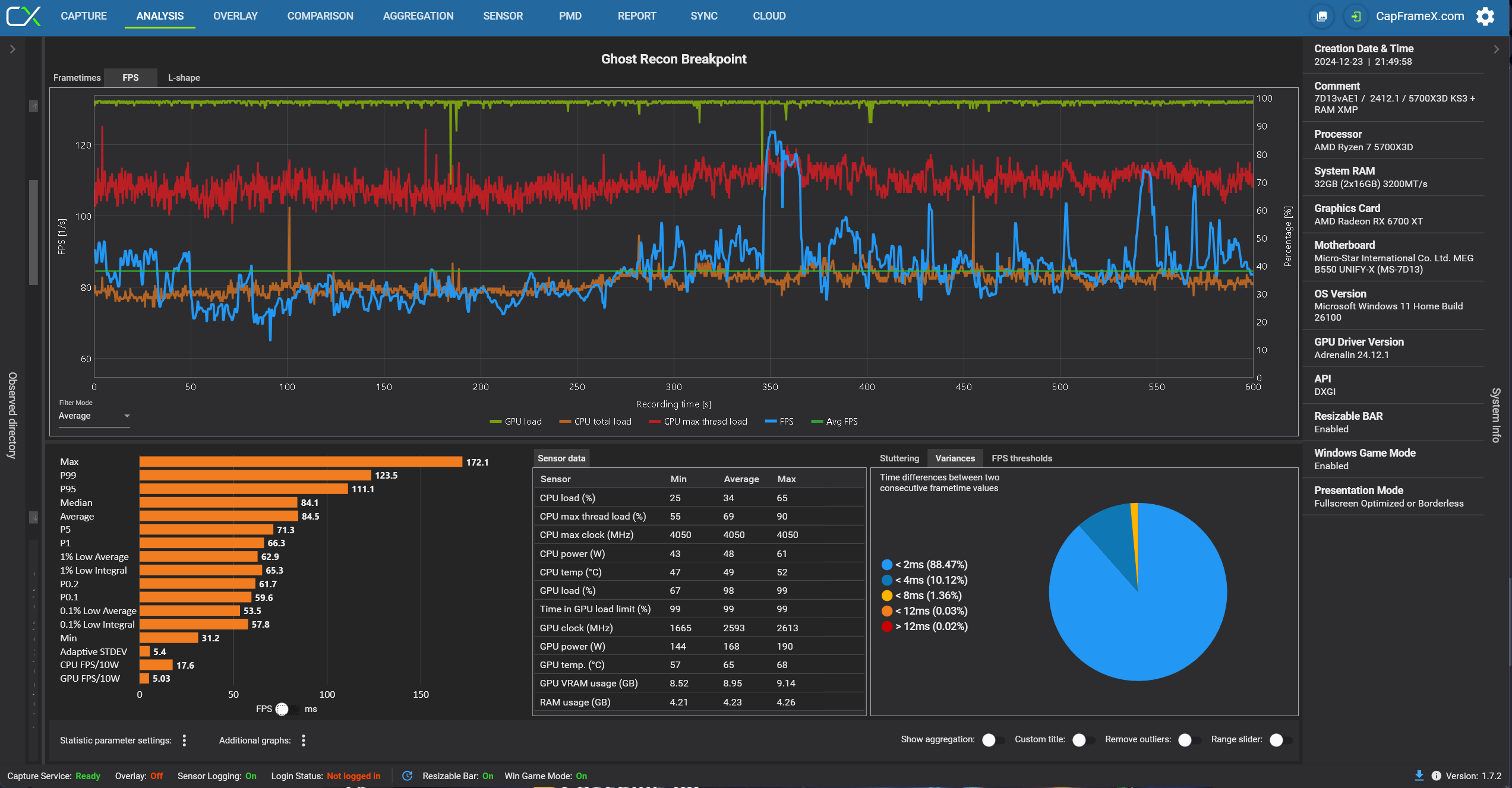 Hier mal ein mitschnitt über 10 Minuten von CapFrameX mit ALLE Daten.