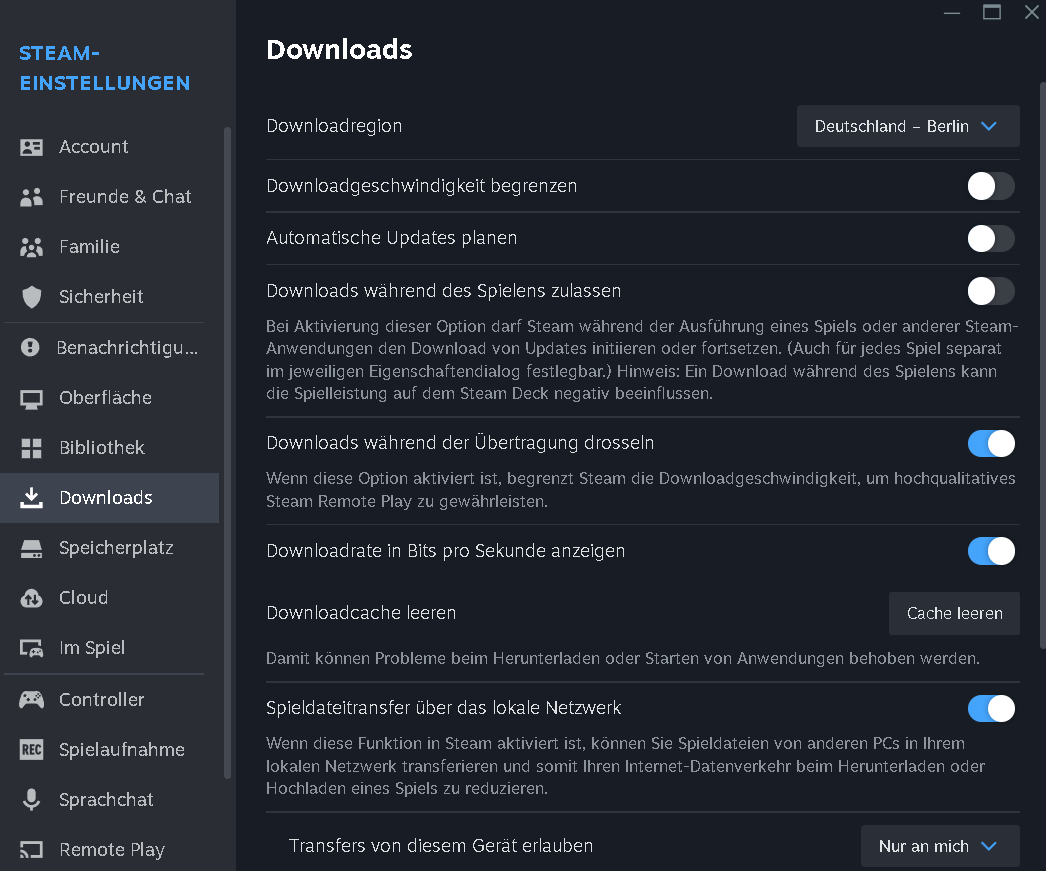 Und bei externen Spielen (falls er es zu Steam hinzugefügt hat) gibt es keinen Download-Cache.