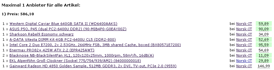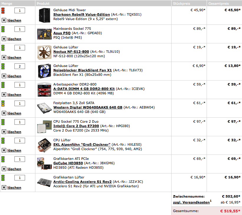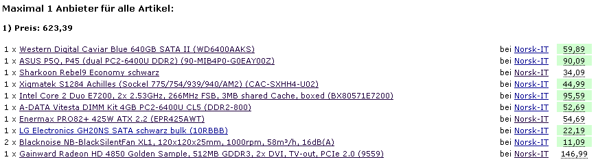 Hatte auch schon alles zusammen gestellt, nur da ist mir dann die Idee gekommen Ihr ein Low-Noise System zu beasteln (mehr Herausvorderung). Sie hat momentan noch einen Aldi-Rechner der ein heider Lärm macht (richtig scheiss laut).