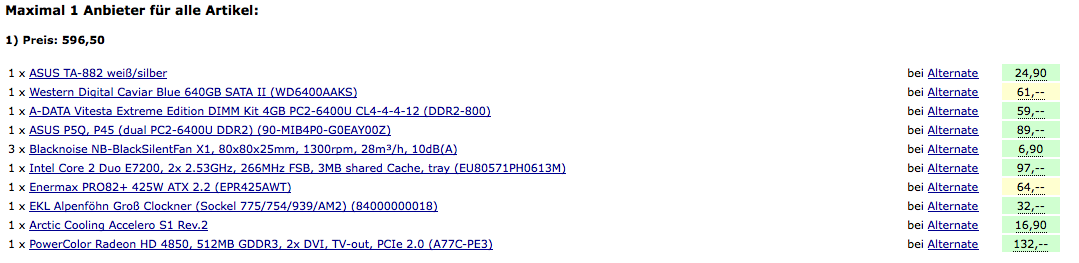 meine Freundin möchte einen neuen Rechner für knappe 500,- € und verläßt sich auf mich bei bei der Zusammenstellung und Aufbau! Soweit sogut, macht mir ja auch ein heiden Spass.