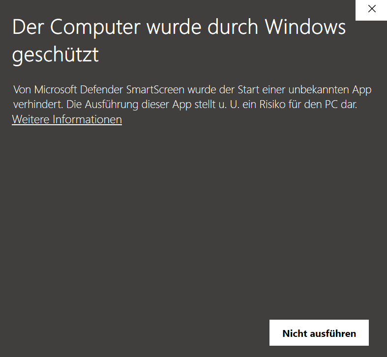 Windows hat ein Popup gezeigt, unsichere Datei geblockt, beim klick auf die exe.