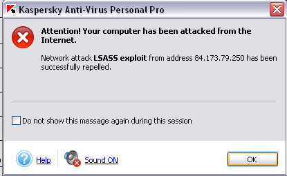seit ein paar tagen bekommte ich fast im Sekundentakt die folgenden Meldungen von Kaskpersky Personal Pro. Ich habe schon den PC einmal komplett von Kaspersky durchsuchen lassen. Außerdem habe ich noch Adaware laufen lassen. Beide haben nichts gefunden. Wobei die Fehlermeldungen doch aussehen wie ein Trojaner oder ?