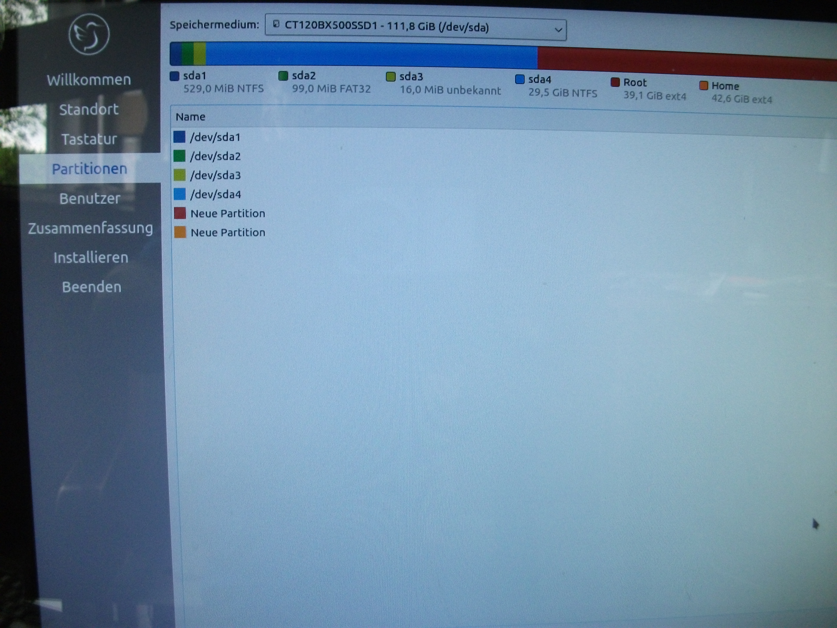 Und dann die Installation passend mit Gparted vorbereiten, nicht über den Installer.