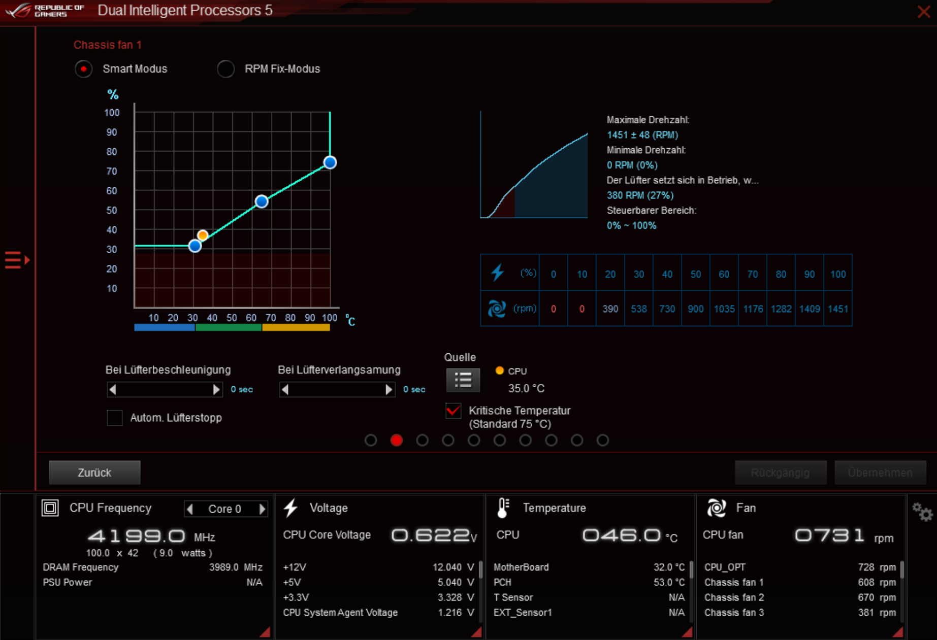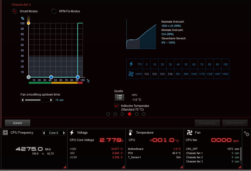 Möchte im ASUS AI Suite (FAN Xpert) die Lüfter alle auf 0 rpm regulieren, es sei denn die CPU erreicht eine bestimmte Temperatur, dann sollen