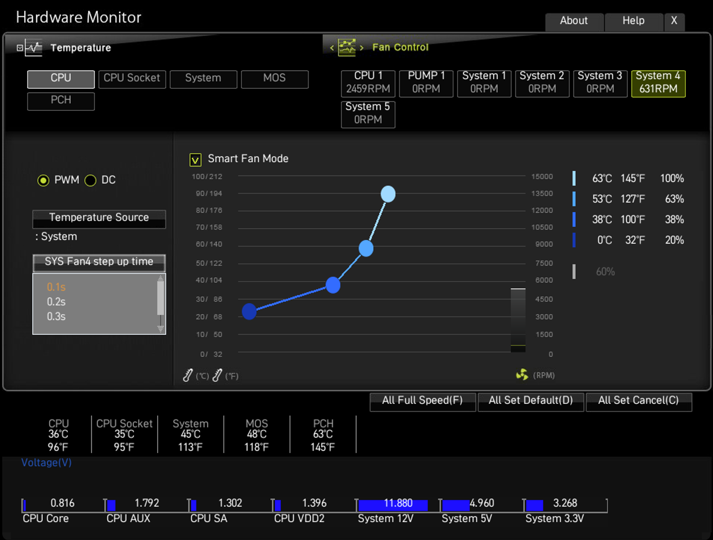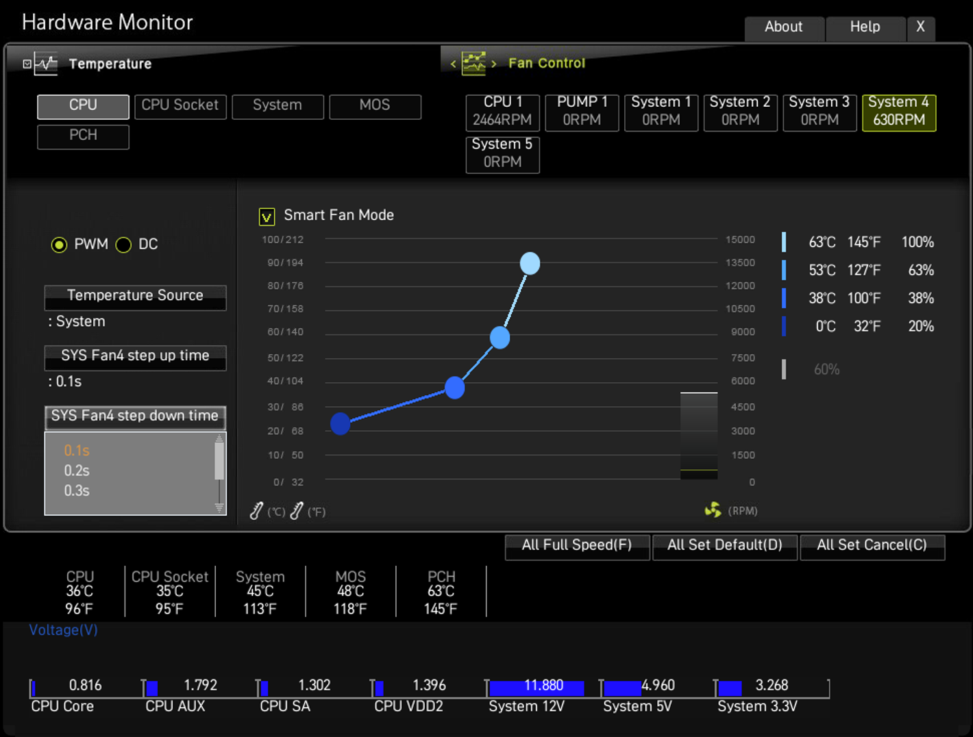 Denn in diesem Fall hast du sie nach CPU-Temperatur eingestellt und besser ist die Mainboard-Temperatur.