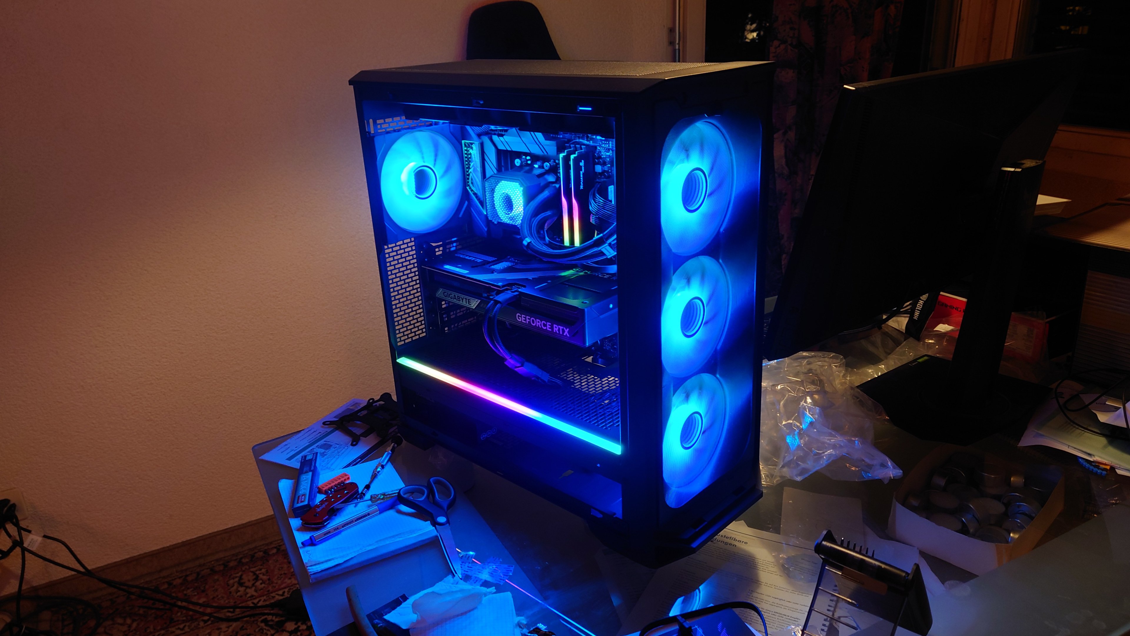 Nun konnte ich den PC einschalten und es scheint alles zu tun, ausser das RBG des Gehäuses (3 Front, 1 Heck-Lüfter und RGB Strip welcher bereits vormontiert war), Lüfter drehen aber wie gesagt RGB funzt nicht. Ein RGB/Fan hub besitze ich nicht, falls kein Weg dran vorbei führen würde, würde ich so eins kaufen.