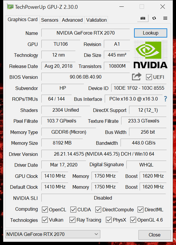 HP Nvidia Geforce RTX 2070 laut System. (Obwohl ich sagen muss sie sieht aus wie eine 2080 rtx von hp).