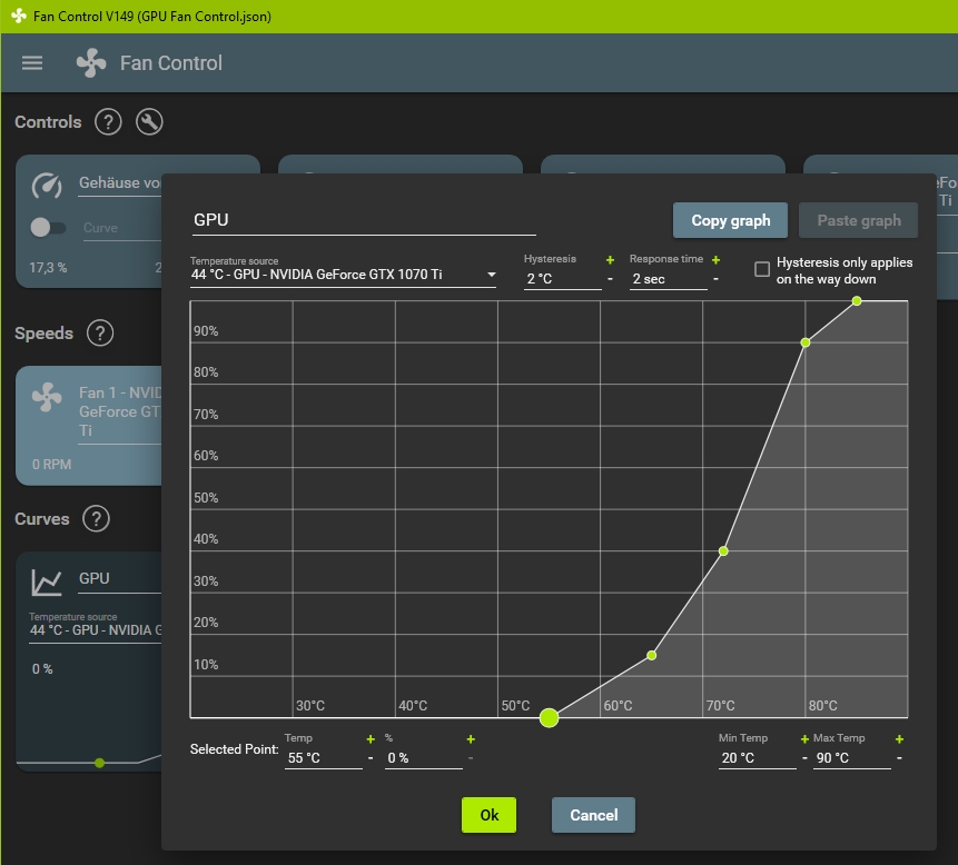 ich hatte mir GPU tweak 3 runtergeladen und versucht damit das problem zu lösen. habe die lüfterkurve eingestellt, so dass die graka schon ab 40-50° die lüfter hochdreht. das hat nicht geholfen und scheinbar auch garnicht funktioniert, sprich die lüfter haben nicht schon bei 40° angefangen zu arbeiten. habe das tool deinstalliert und das ganze dann mit fan control versucht, auch das hat nicht geholfen.