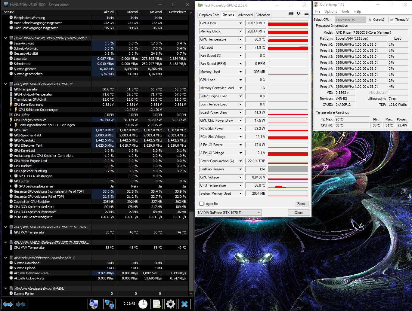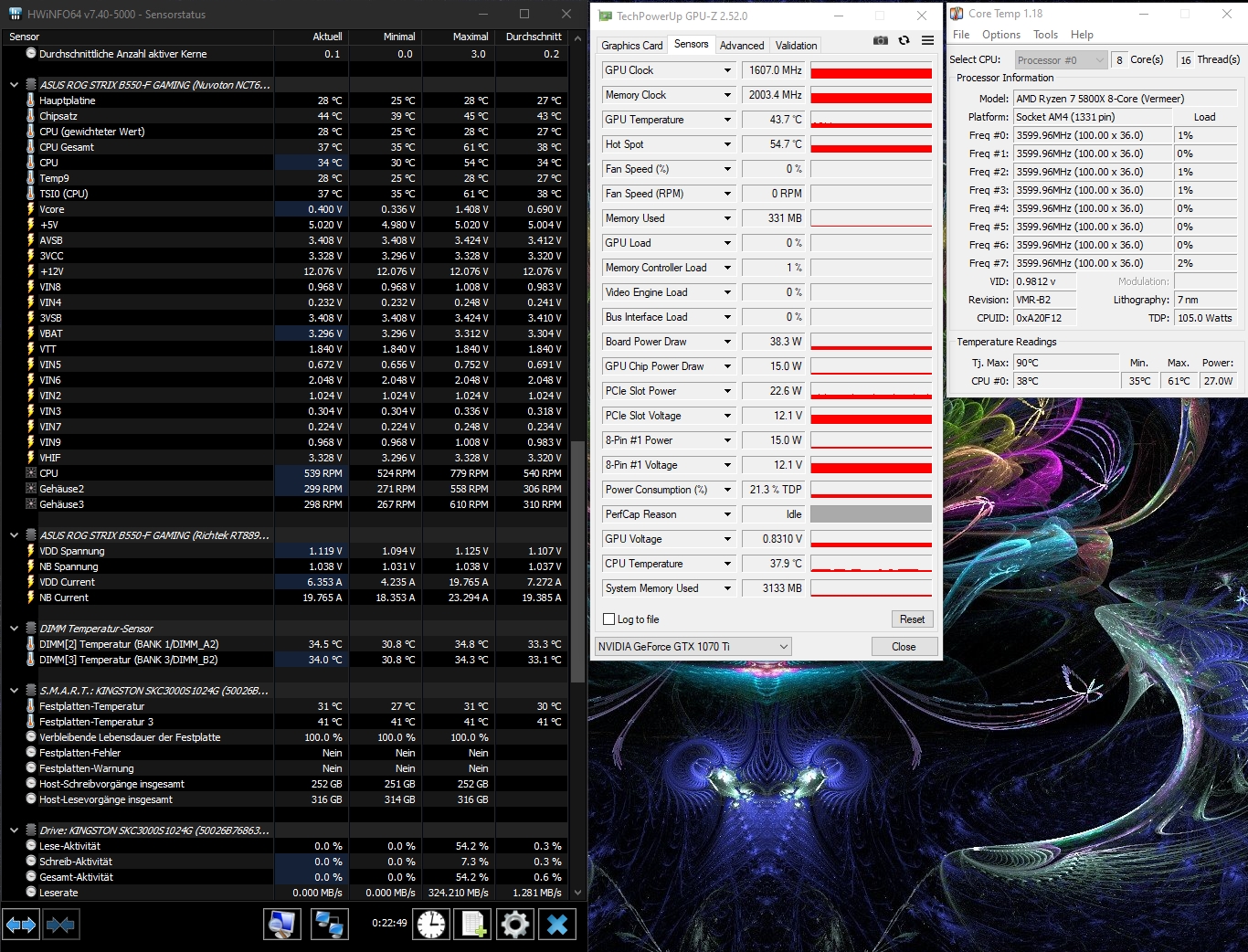 - Prozessor (CPU): Ryzen 5800X (gebraucht) @ Alpenföhn Dolomite Premium