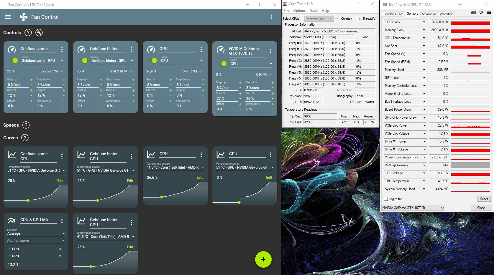 das ganze sieht dann so aus, wie in den screenshots zu sehen ist. ausserdem kann ich die lüfter bis auf 27% runter regeln, ab 26% ist dann schluss