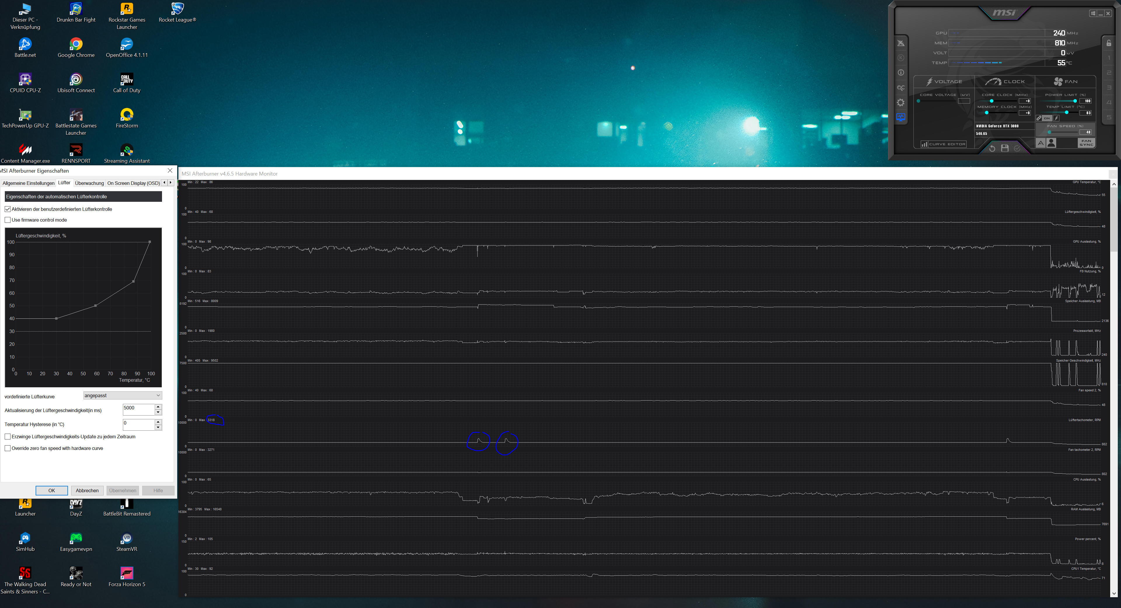 Habe versucht eine Lüfterkurve zu erstellen, aber das hat leider nichts gebracht.