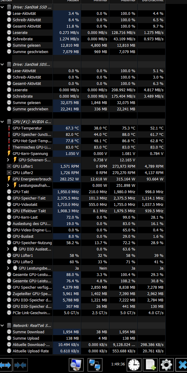 Seltsam ist desweiteren, dass in Hwinfo lediglich zwei Lüfter angezeigt werden, obwohl die Karte doch über 3 verfügt (siehe Screenshot).