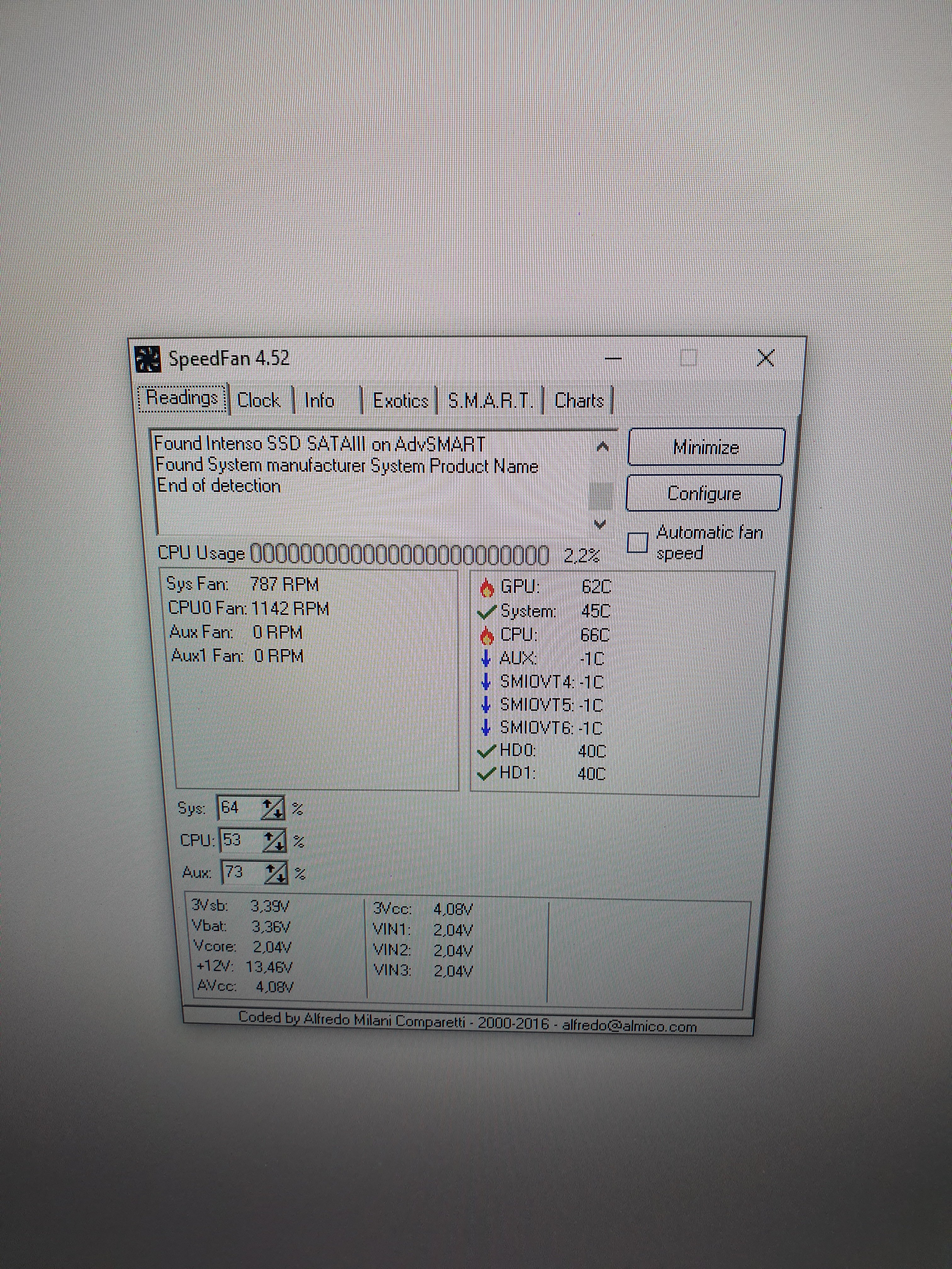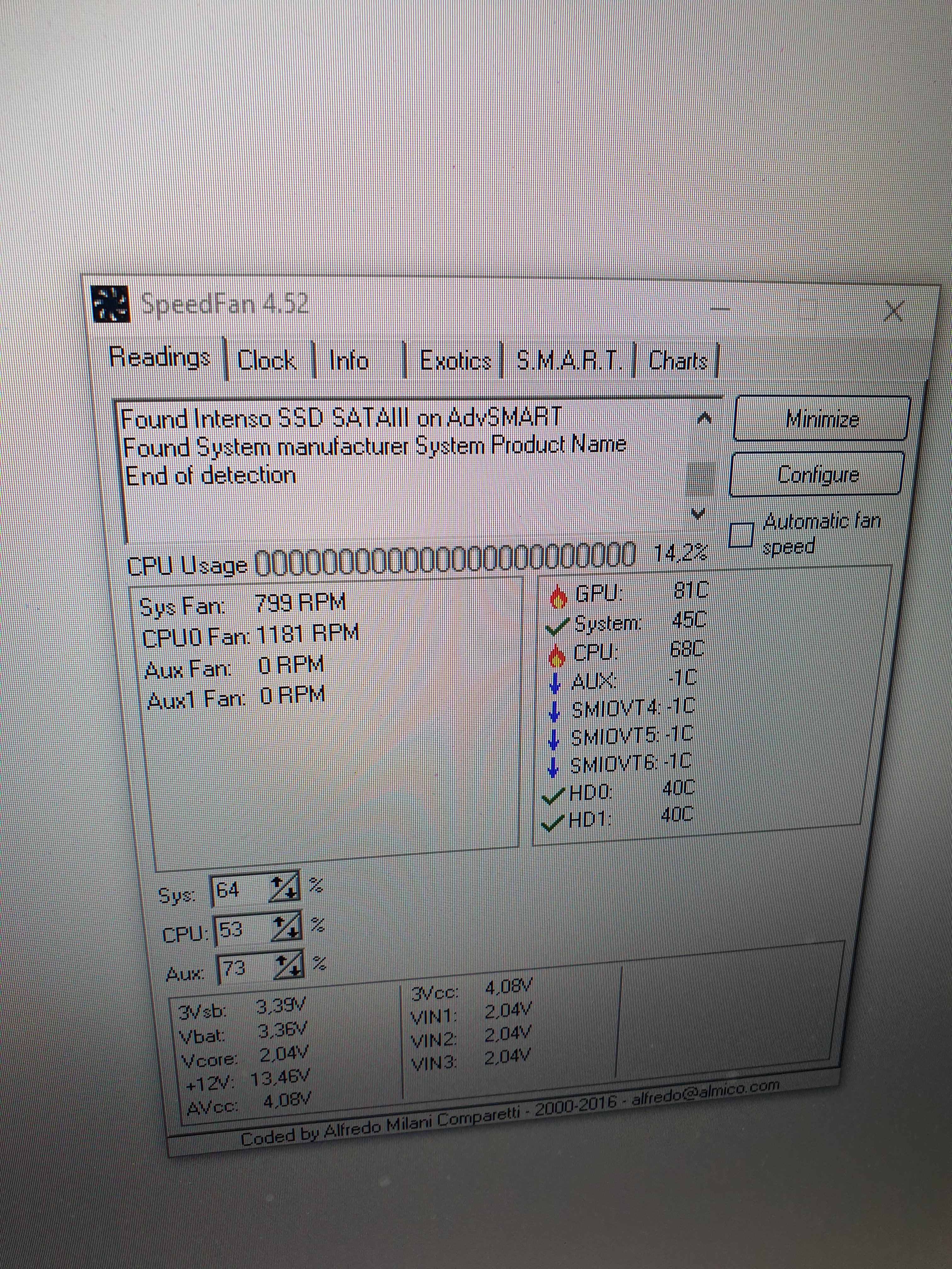 SpeedFan bitte nicht mehr verwenden. Das Tool kommt mit den aktuellen Hardware Thermal Controls nicht gut zurecht und mit den neuartigen Active Thermal Controls schon gar nicht.