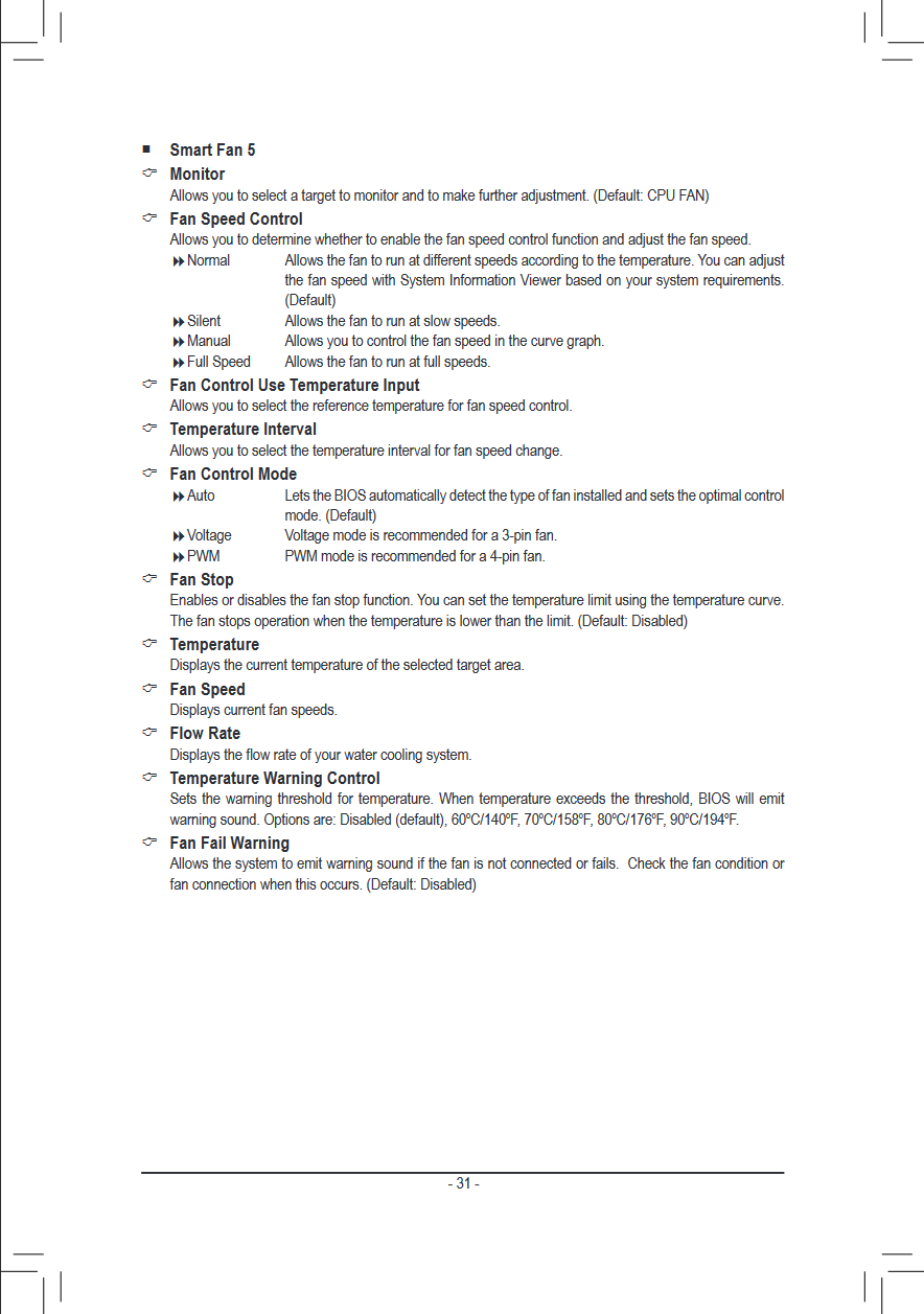 Damit übernimmt die Steuerung der Lüfter das Motherboard. Die Steuerung wird auf Seite 31 des Handbuchs beschrieben: