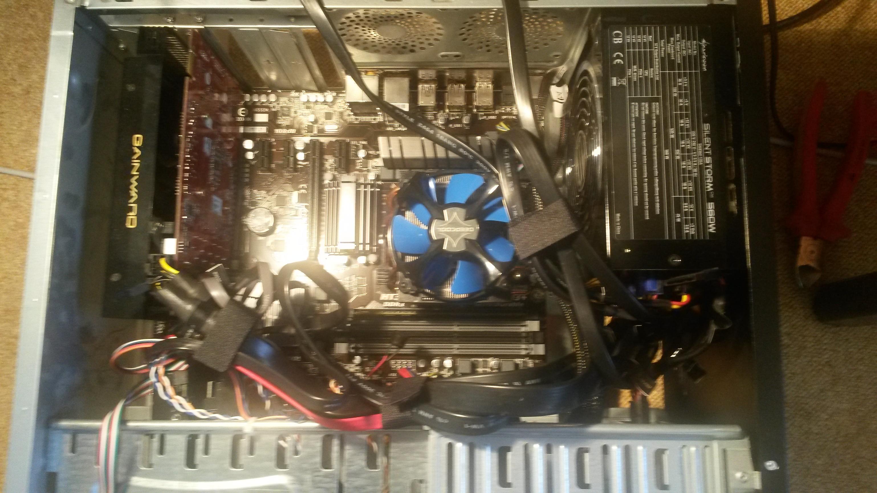 Hallo! Hab mich mal hingesetzt um meinen "alten" PC wieder fit zu machen. Nachdem ich mit dem Einbau fertig war (siehe Bilder), und ich den Start-Knopf betätigte, liegen alle Lüfter (CPU, GPU, Netzteil) ganz minimal kurz an, bekamen also nur einen kurzen Stromimpuls und dann passierte nichts mehr. Gepiept hat er auch nicht (Pieper ist korrekt angeschlossen und funktioniert).