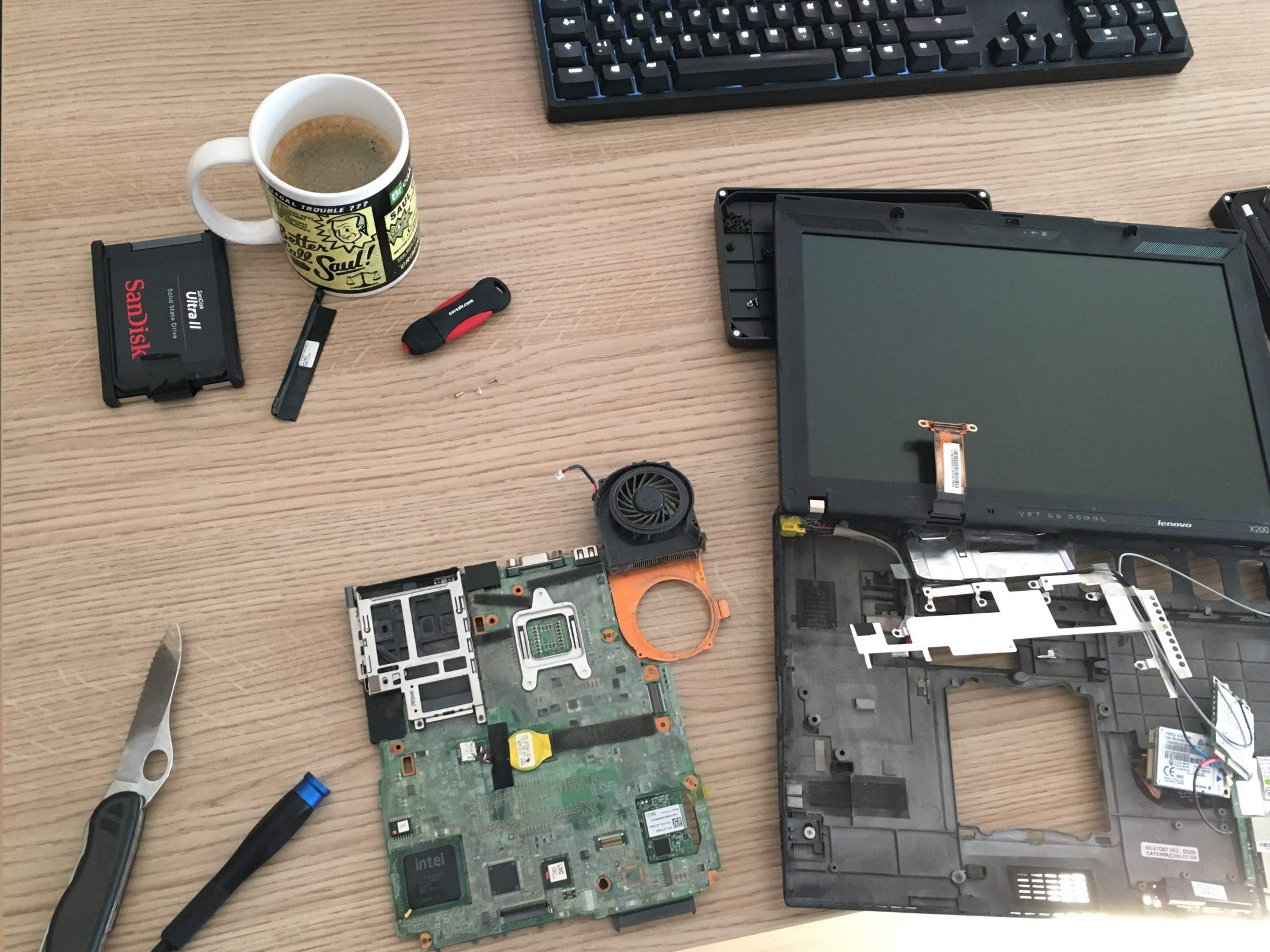 Ich komme an den Lüfter nicht ran, also muss das komplette Laptop auseinander gebaut werden oder durch einen 1mm Lüftungsschlitz gespritzt werden.