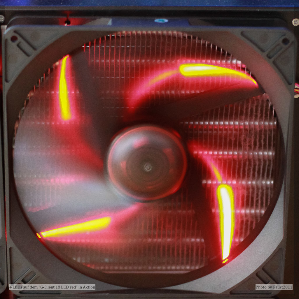 Heißt das Ziel beim Aufbau jedoch "Silent-System", das gemäß meiner Kriterien weder im Leerlauf noch unter Last hörbar sein soll, dann muss zum teureren Red LED gegriffen und je nach Einsatzszenario die Spannung gesteuert werden.