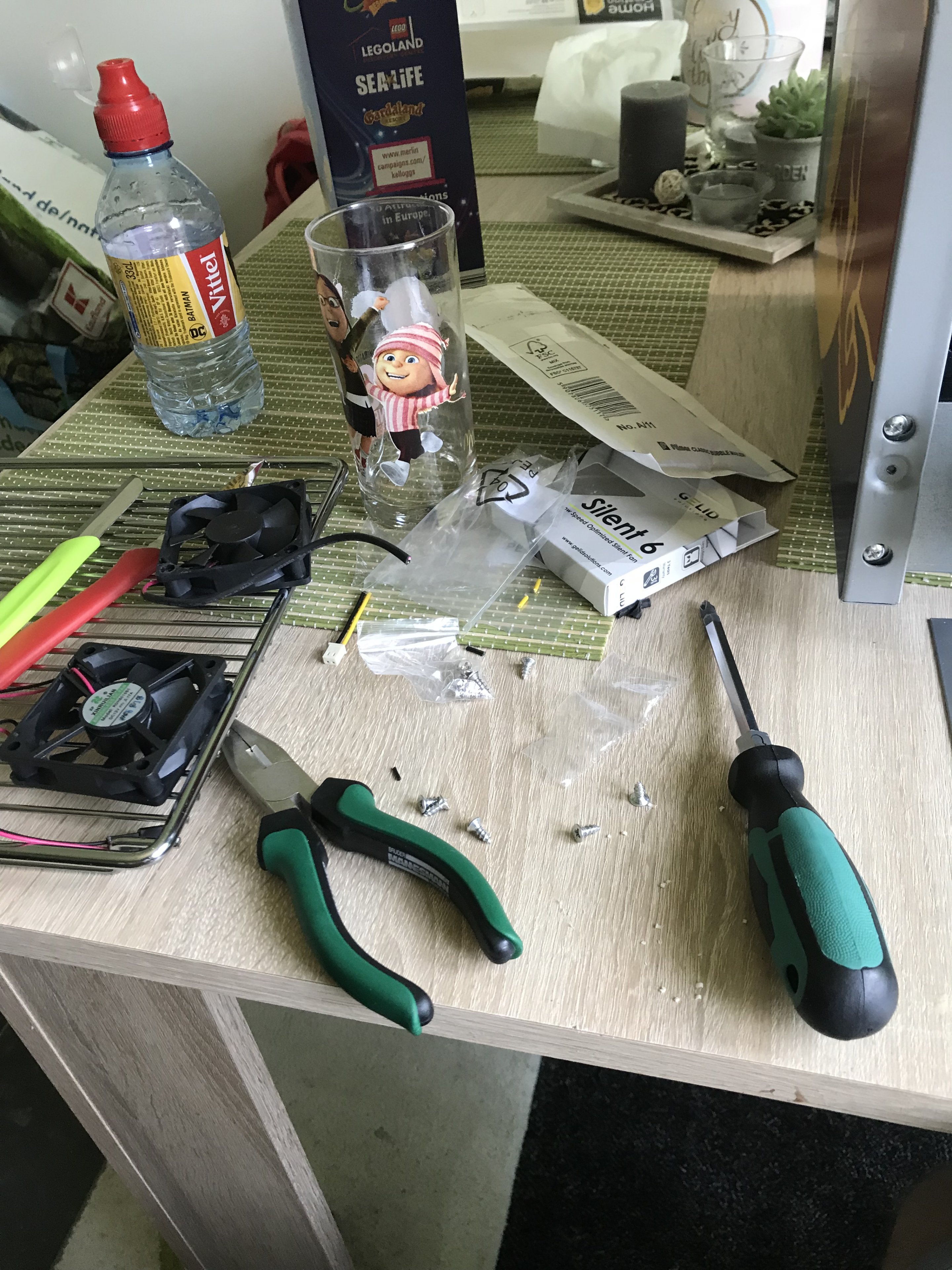 Der Lüfter hinten am Kondensator ist ganz normal also am Netzteil gucken die 2 PINS raus wo ich den Lüfter anstecke.