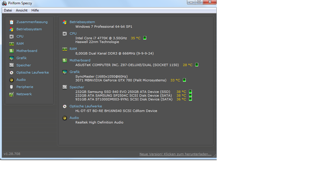 Hier sind mal meine Temperaturen nach einer halben Stunde nach PC-Start:
