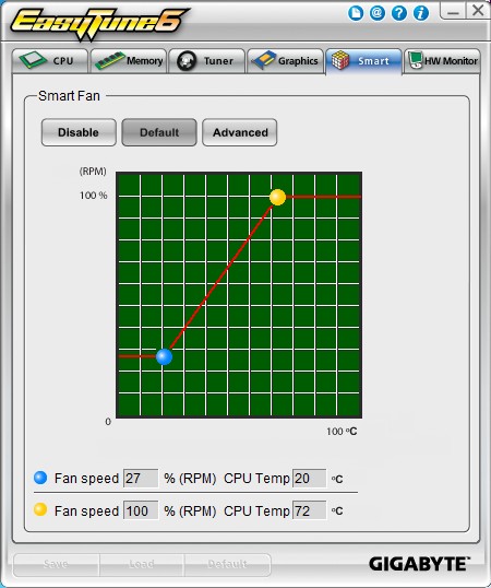 habe EasyTune installiert von Gigabyte (ist sowas wie die AI Suite bei Asus oder MSI Afterburner). Also das Tool womit ich auch in so nem Diagramm einstellen kann, wie stark der Lüfter drehen soll. Hab mal ein Bild angehängt.