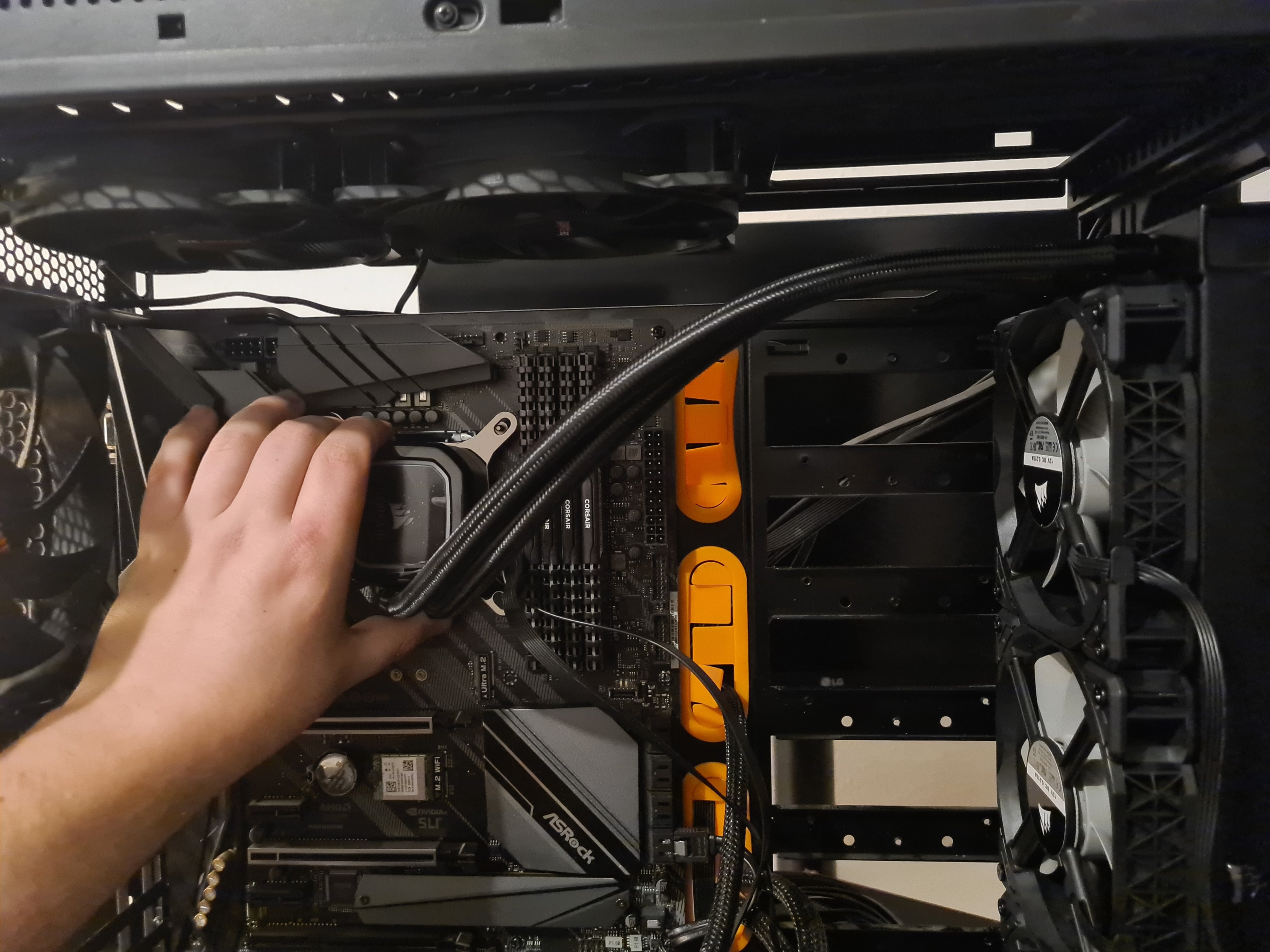 Hast du erst die Lüfter dran und dann den Radiator ins Gehäuse? Kriege die Lüfter kaum rein