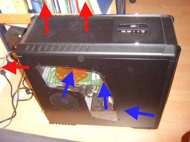 Wie rum habt ihr das Netzteil? Nach unten ist ja schon und gut aber so saugt das NT staub vom Boden, da kein Staubfilter vorhanden. Bei Laminat und Katze im Haus keine gute Idee!