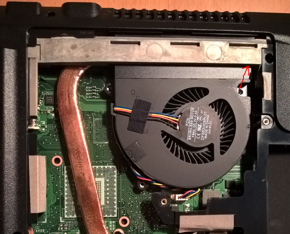 um die Staubschicht zwischen Lüfter und Kühlkörper meines Medion MD99030-Notebooks (Baujahr 2012) zu entfernen, möchte ich den Lüfter ausbauen.