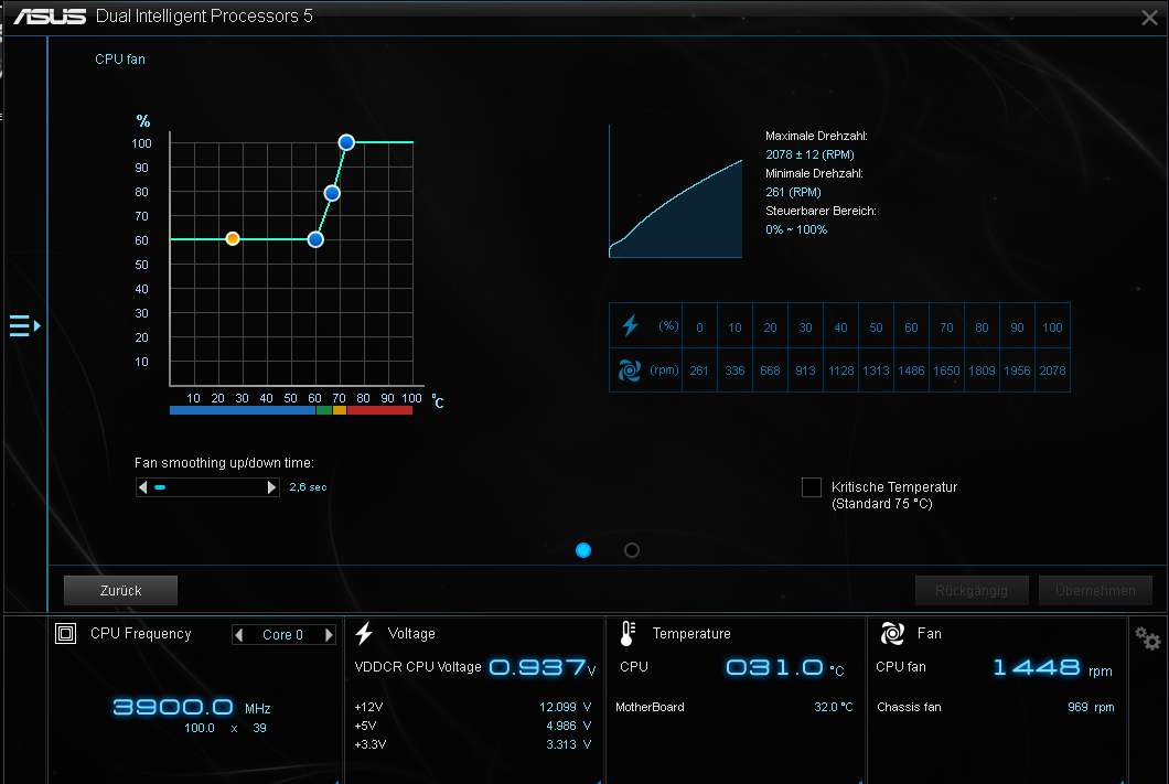 Du schreibst mir das ich bei 83 Grad Vollgas geben soll doch Asus sagt doch schon das schon bei 75 Grad ein Kritischer Zustand erreicht ist. Ich werde heute Nachmittag noch ein Neues Foto hochladen von meiner aktuellen lüfterkurve.