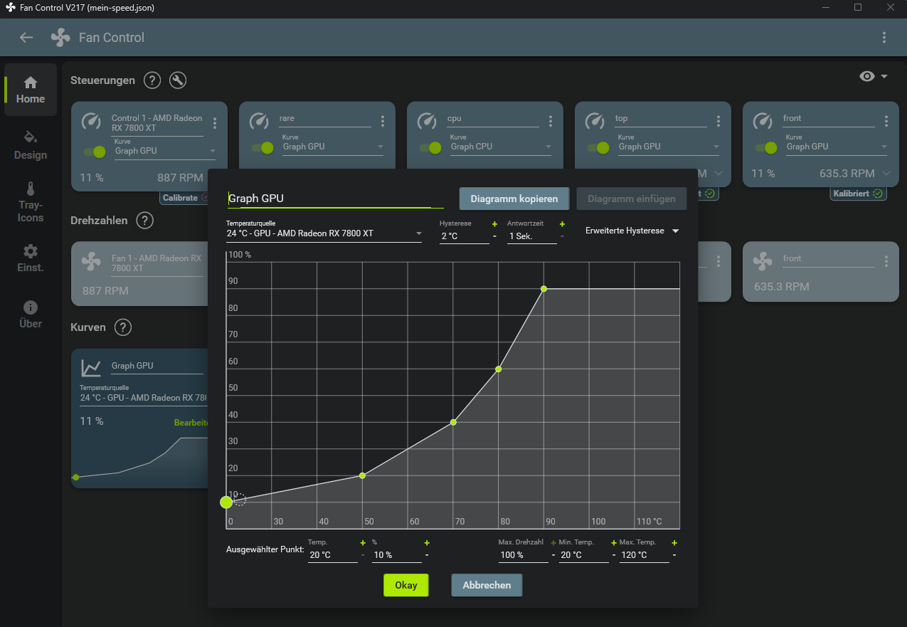 Bitte auch an die Lüfterkurven für die Gehäuselüfter denken.