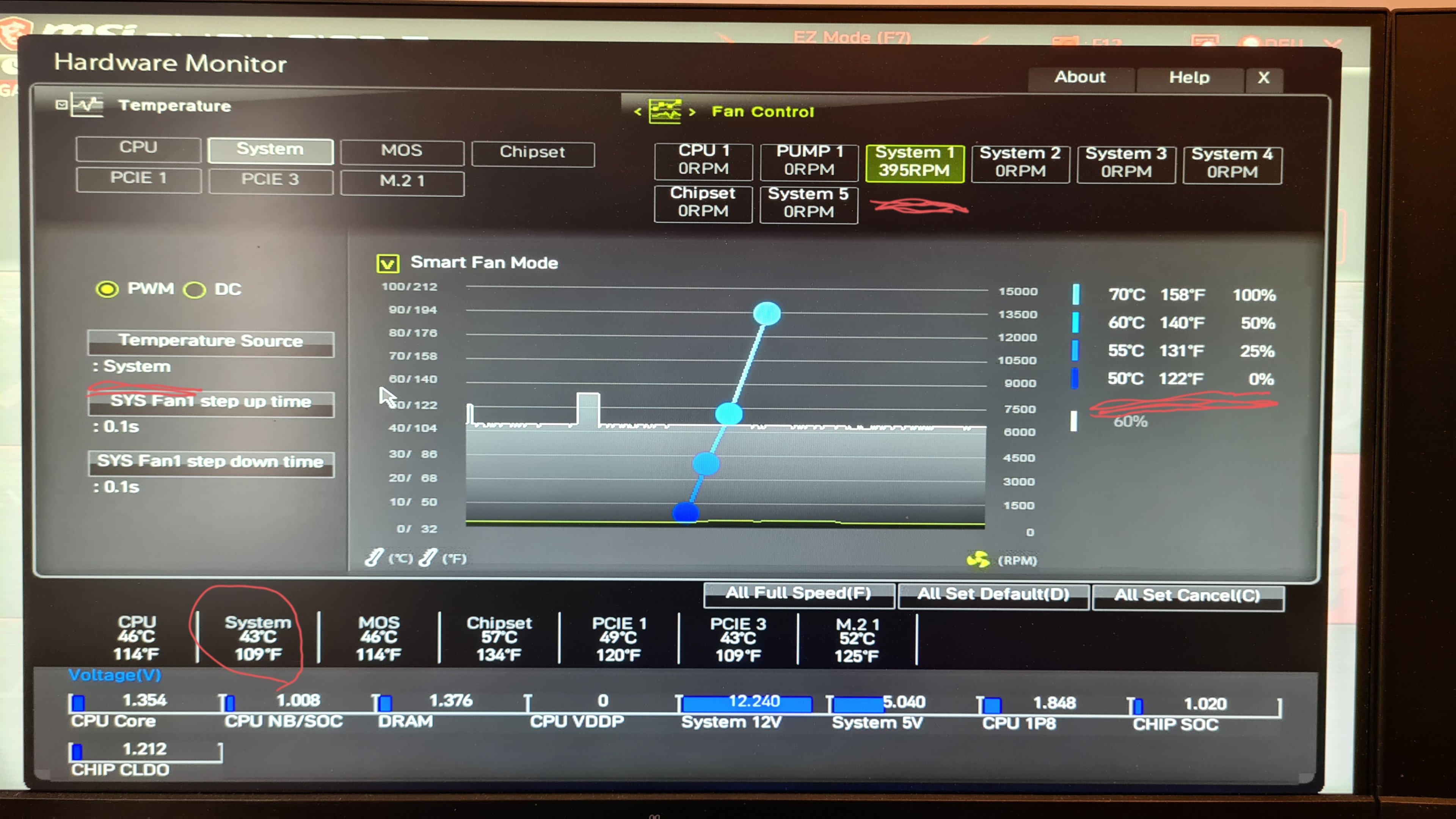 Was leider nicht passt ist das ich im Bios meines Mainboards MSI MEG X570 Unify die Lüfter nicht auf 0 rpm stellen kann Sie laufen nie unter 380 rpm - obwohl 0 eingestellt ist.