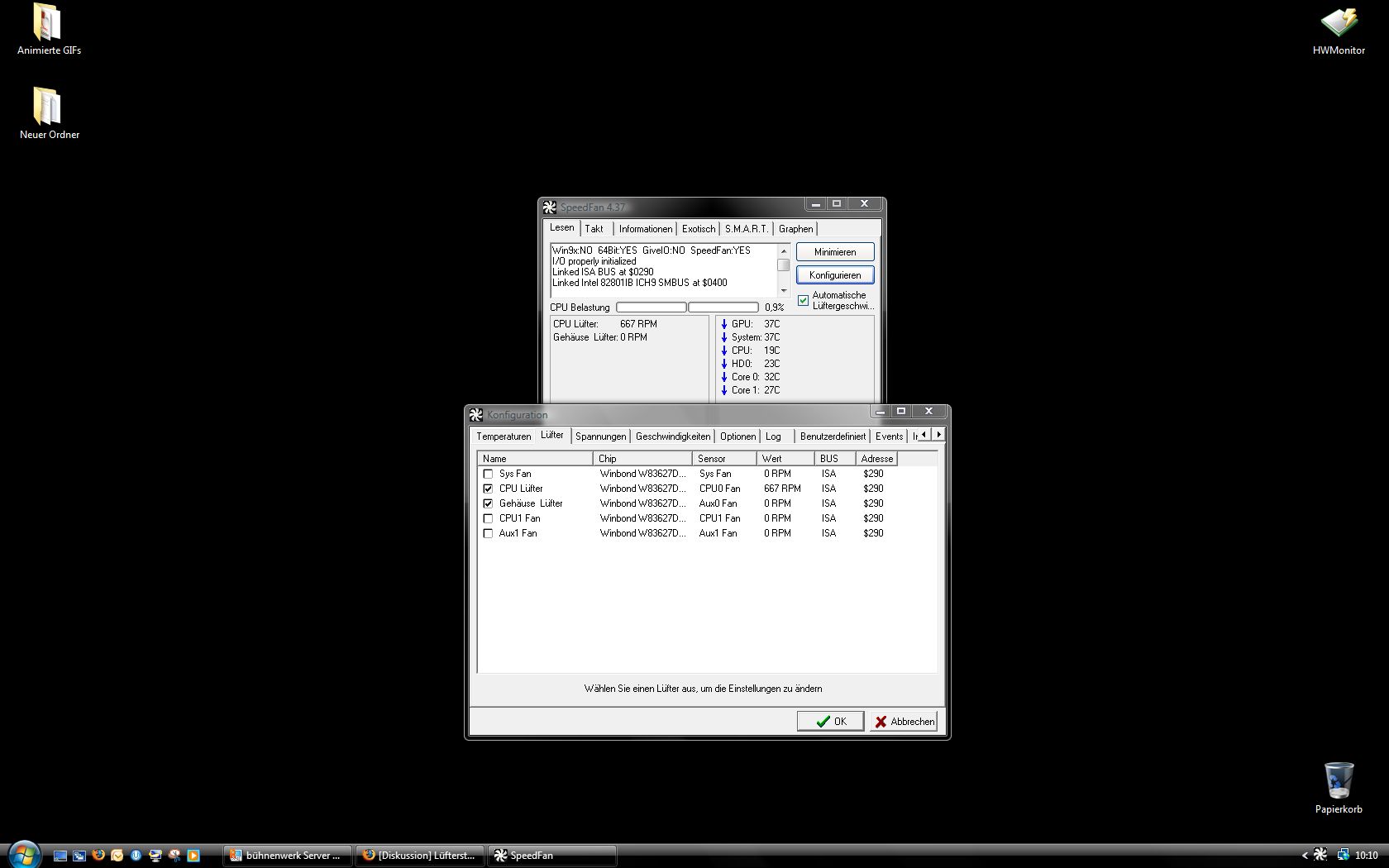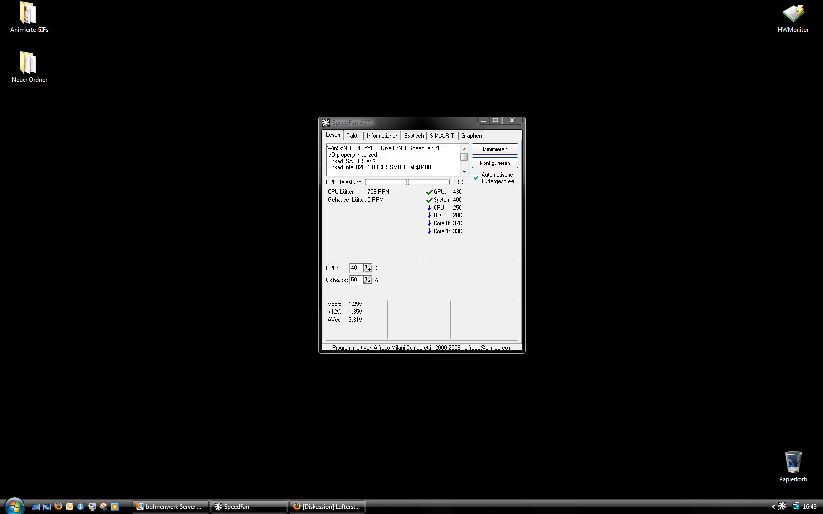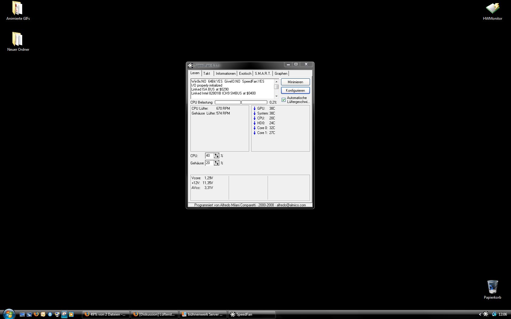 da der cpu-lüfter mörderlaut ist, habe ich speedfan installiert und ausprobiert.