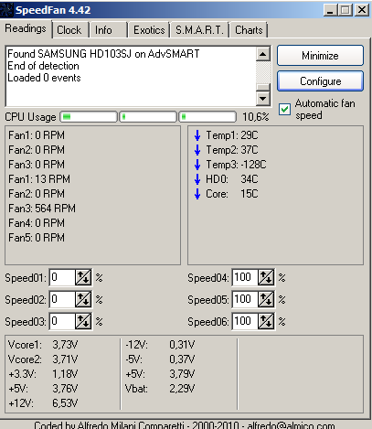 Die Speedfaneinstellungen sind AFAIK richtig, bis jetzt habe ich schon auf vielen PCs Speedfan getestet.