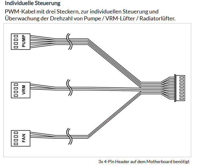Gehäuselüfter stecken an einem RGB Controller hinten am PC, Wasserkühlung Pumpe ist an PUMP, VRM Lüfter steckt an Sys_Fan 2 und Radiatorenlüfter an Sys Fan 1.