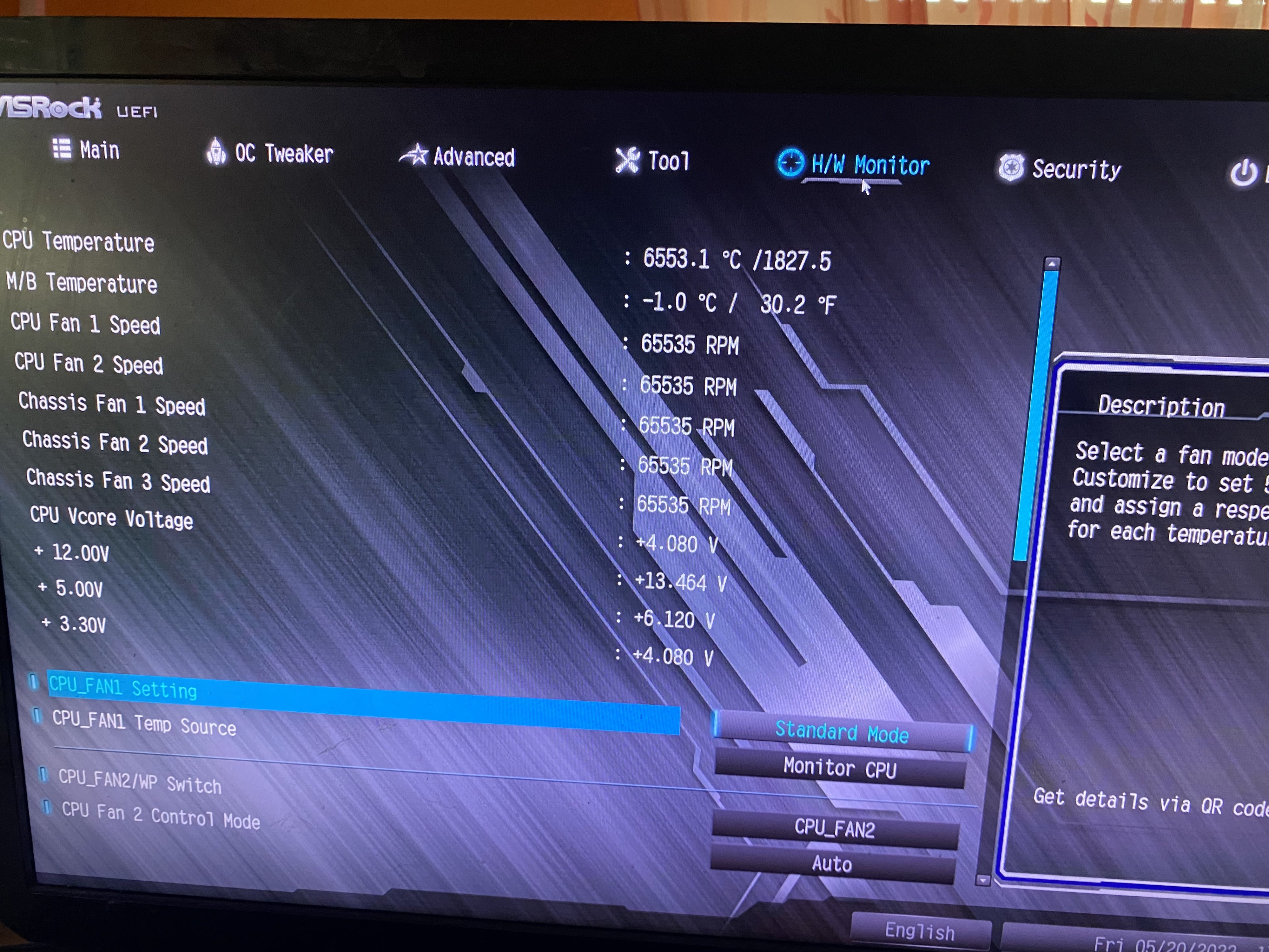 Hallo, ich habe ein ASRock B450 Pro4 R2.0 und habe mir einen Ryzen 9 5900x geholt und auf Bios version 5.30 geupdated weil 5.0(vorher) nicht ging. So jetzt ist es aber so ich hatte vorher einen Ryzen 5 1600x Bios version 5.0. Aber mit dem oben gennanten Ryzen 9 geht diese Lüftersteuerung nicht mehr und das Board zeigt 6553 Grad bei der CPU und -1 Grad bei dem Mainboard und bei jedem Lüfter 65535 RPM. Mit meinem Ryzen 5 ging alles. Nur jetzt schaue ich schon tagelang und finde keinen Beitrag und keine Lösung. Hoffe das jemand weiß was ich machen muss das alles wieder geht, verzweifle sonst.