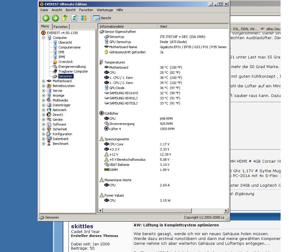 Im Moment bläst mein CPU Kühler (Mugen) seine Abluft über mein Netzteil nach draußen. Komischerweise haben die Kerne unter Idle 47°C bzw. 51°C.