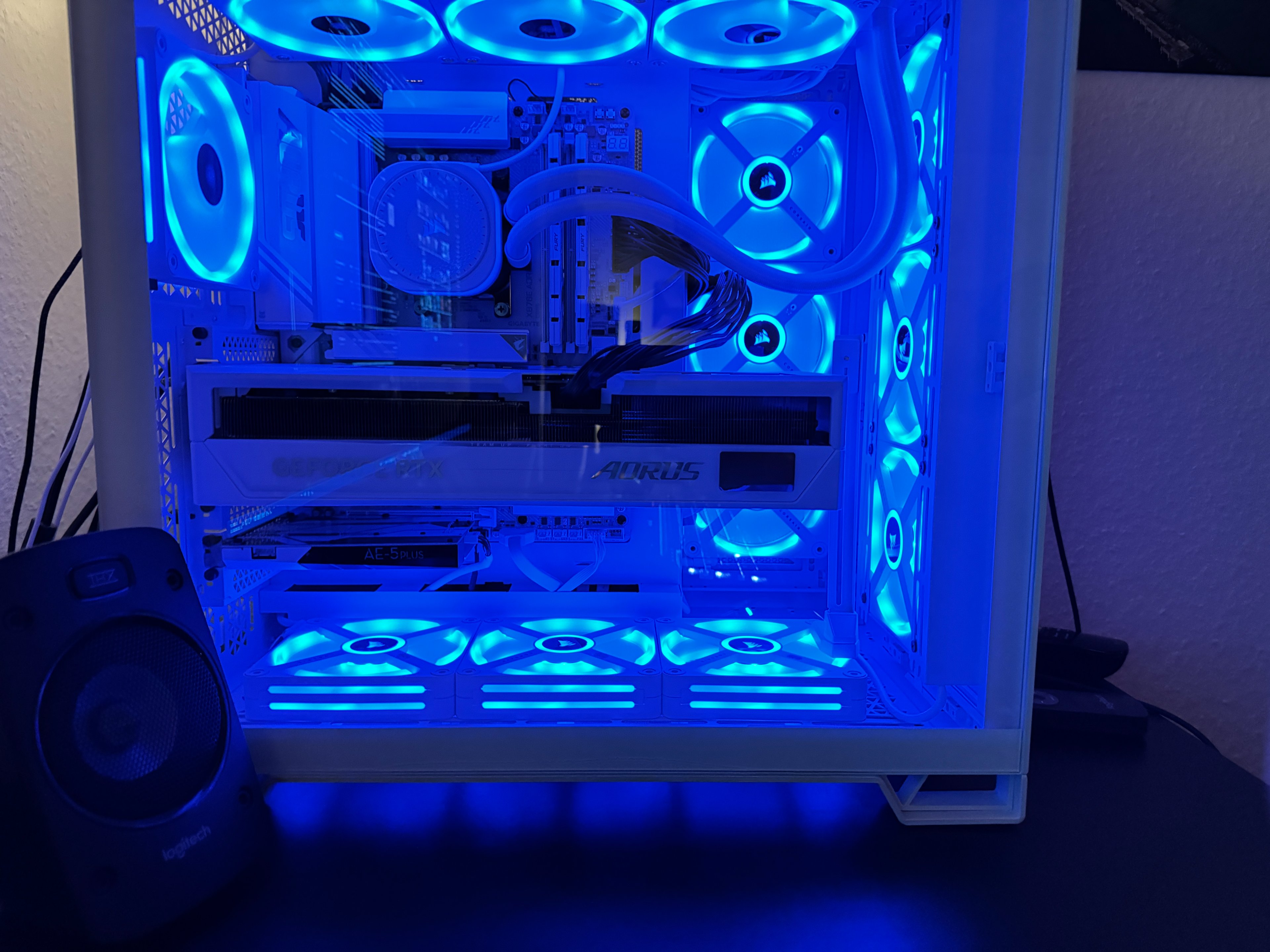 3 aufm Radiator, 3 vorne, 3 an der Seite, 3 unten und einer im Heck. Macht für mich 13 Stück die flüsterleise auch mit den 600W der RTX 5090 klarkommen. Im Silent BIOS Modus hört man die Karte kaum bis gar nicht und die Temps sind top.