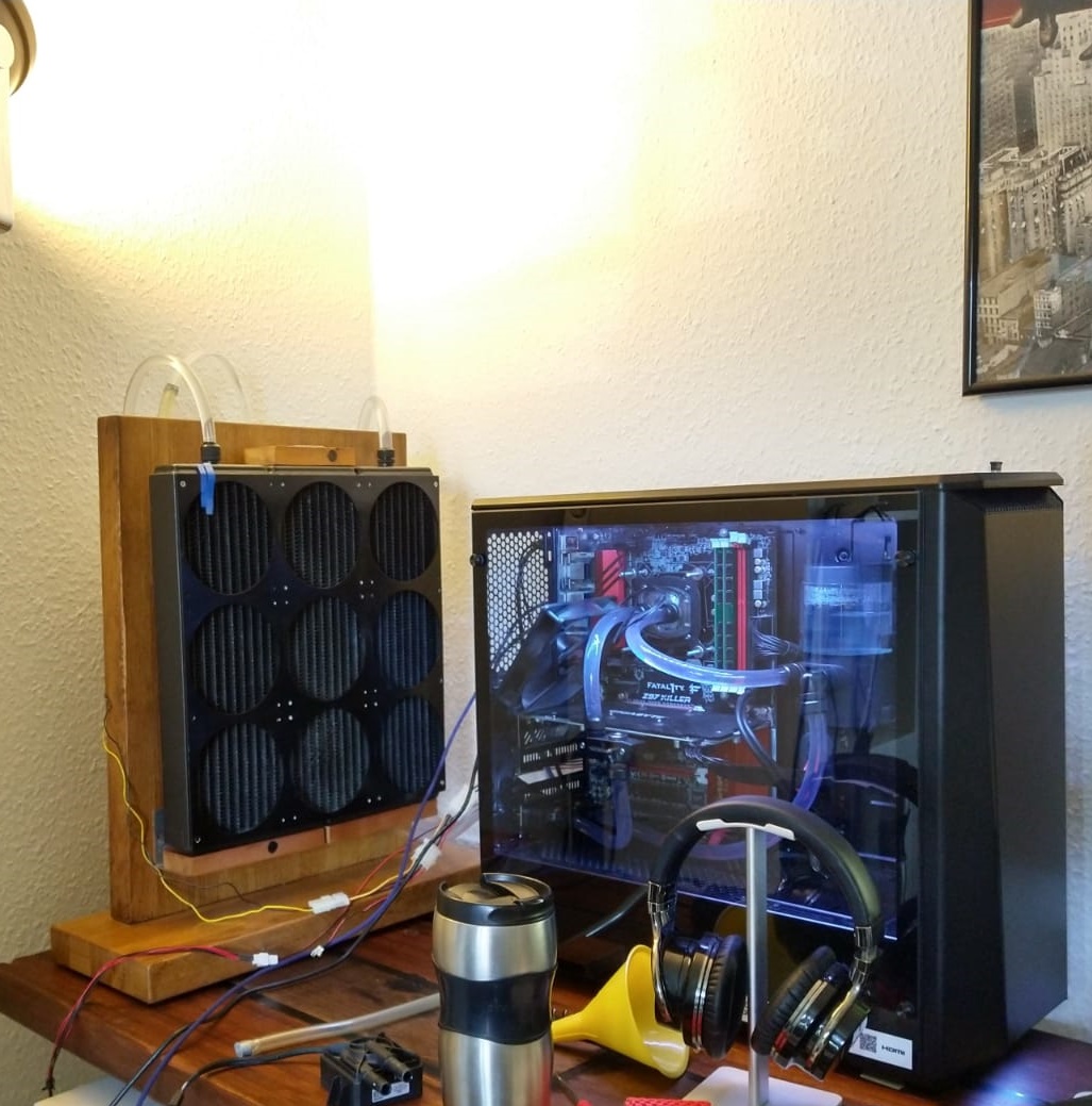 Das kostet Geld, Zeit, Planung und ein bisschen Muskelkraft (alles Hartholz). Wenn Du das machen willst, dann wirds am Ende auch leise. Wasserkühlung ist halt immer etwas "basteln".